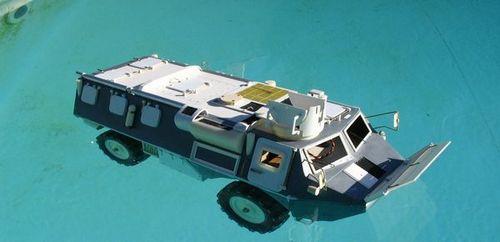 | des véhicules amphibies comme ce Vab 4 x 4 envahissant une piscine |