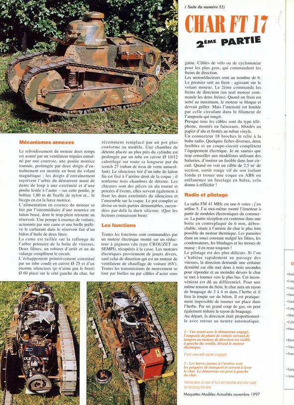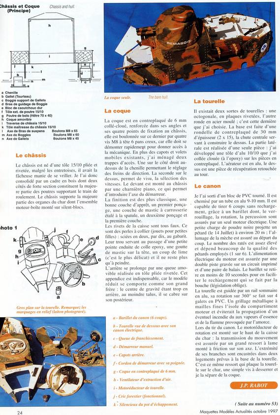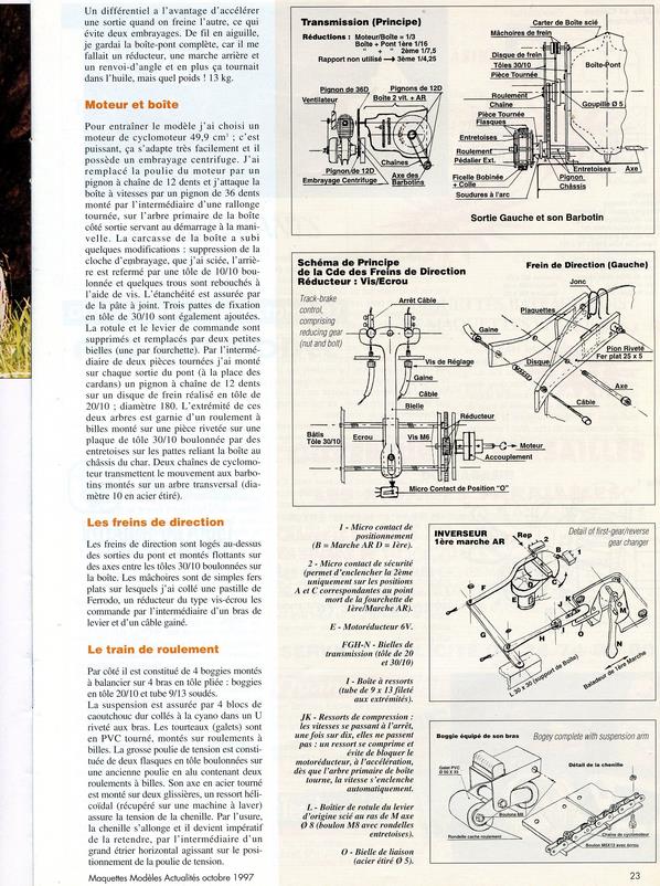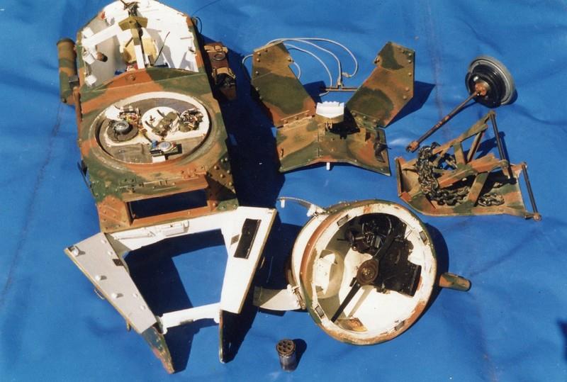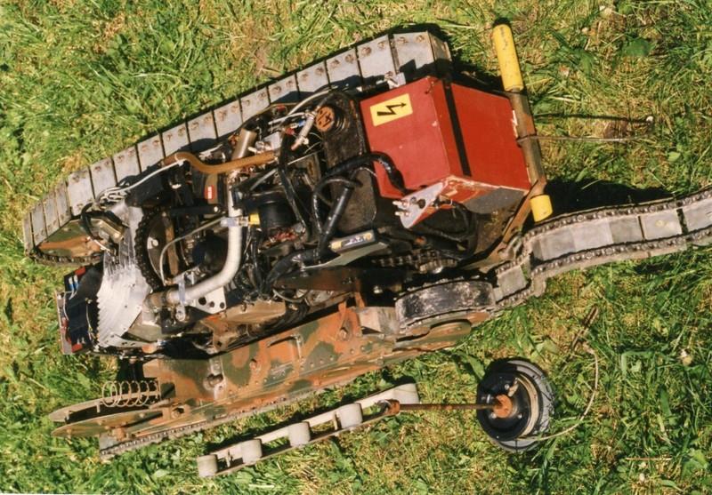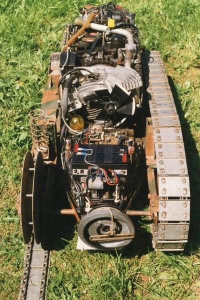 Pour le char, c'est la radio qui a posé le plus de problèmes : modification de presque tous les servos, en plus c'était une marque française qui a disparu . Avec des parasites générés par les divers moteurs, le volant magnétique du moteur thermique , les vibrations des câbles dans leurs gaines extérieures, ...