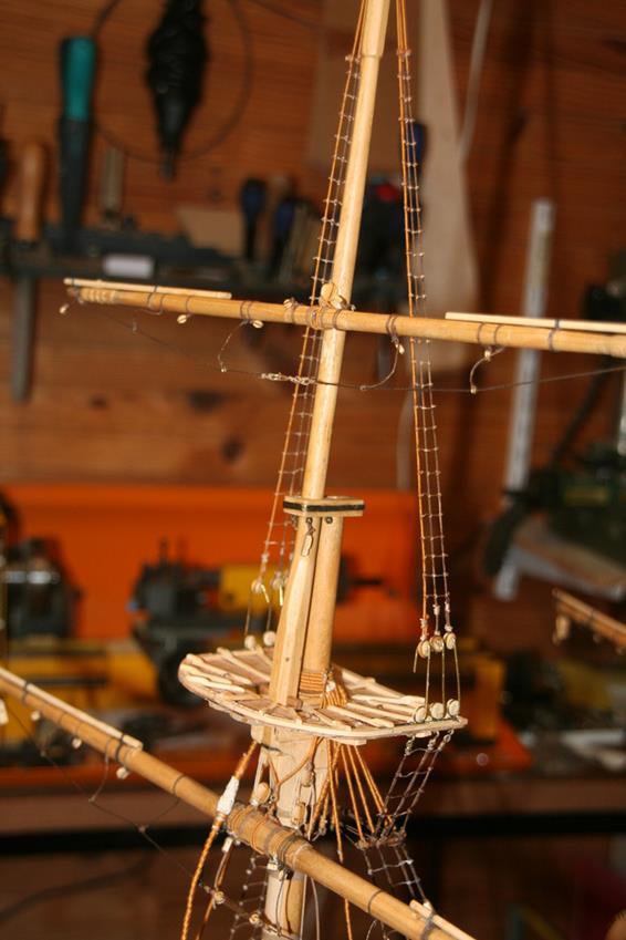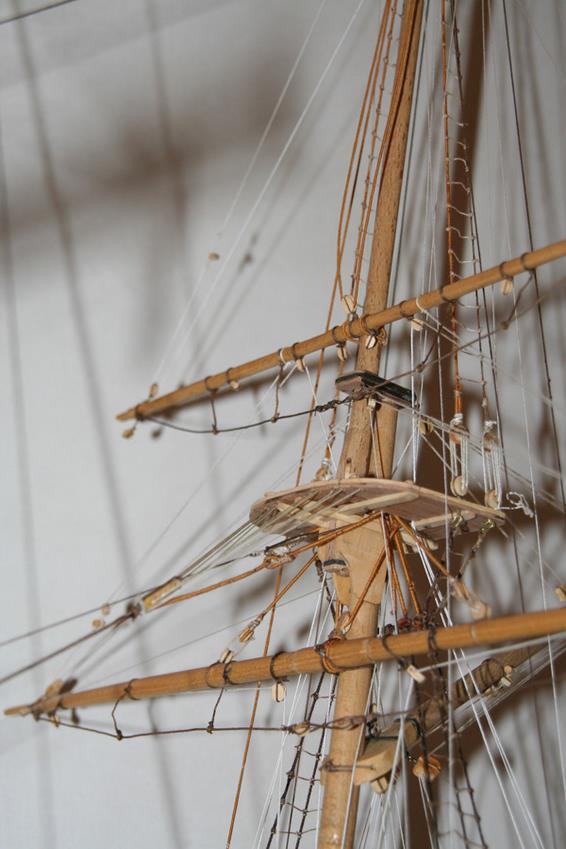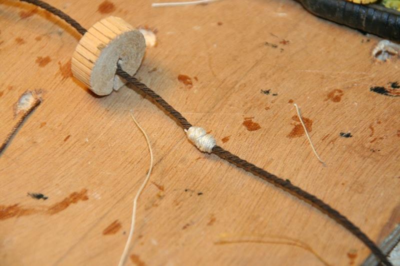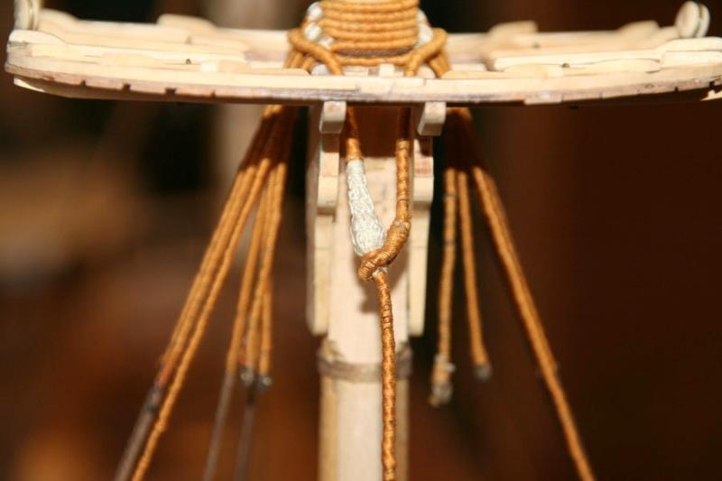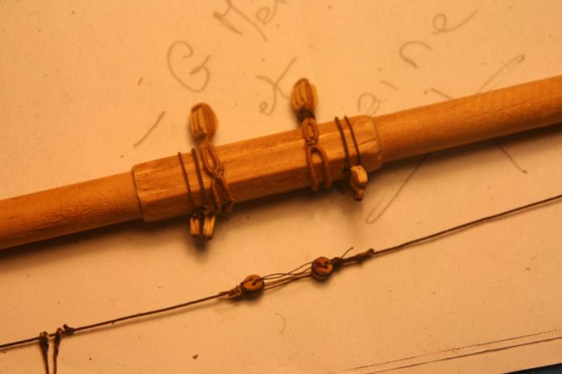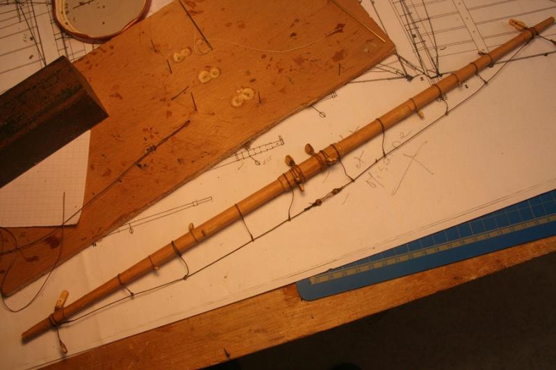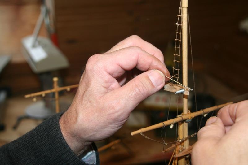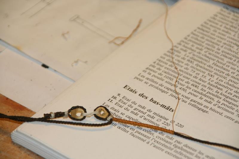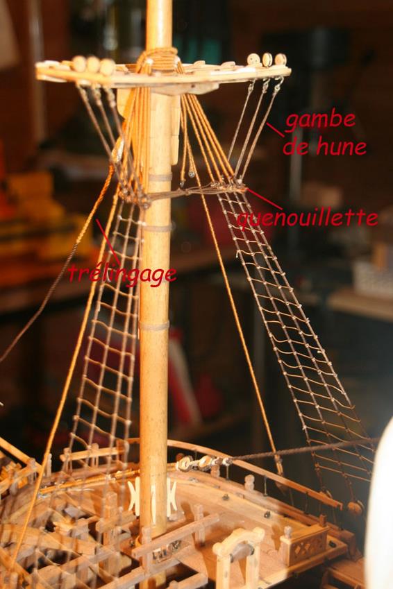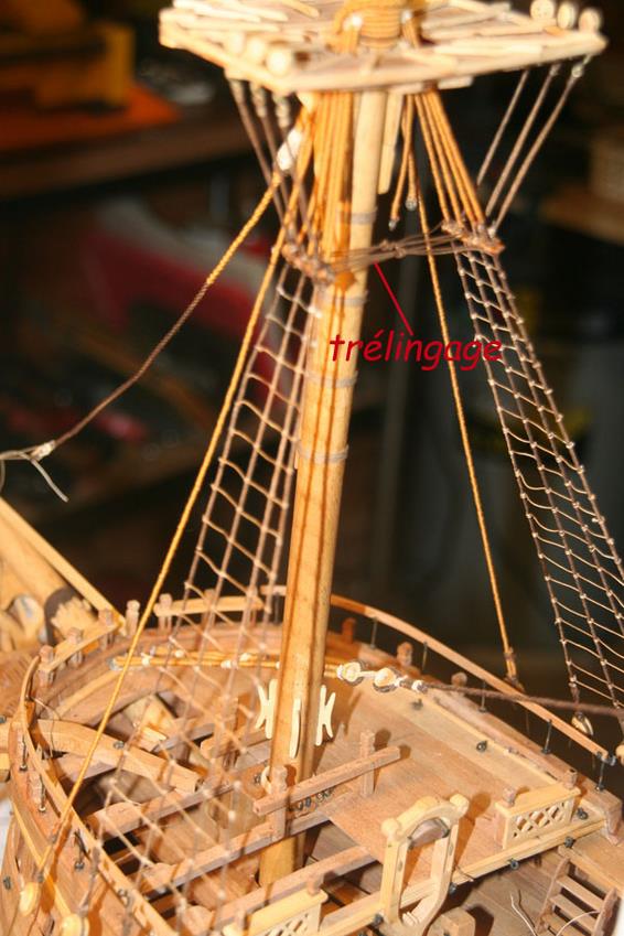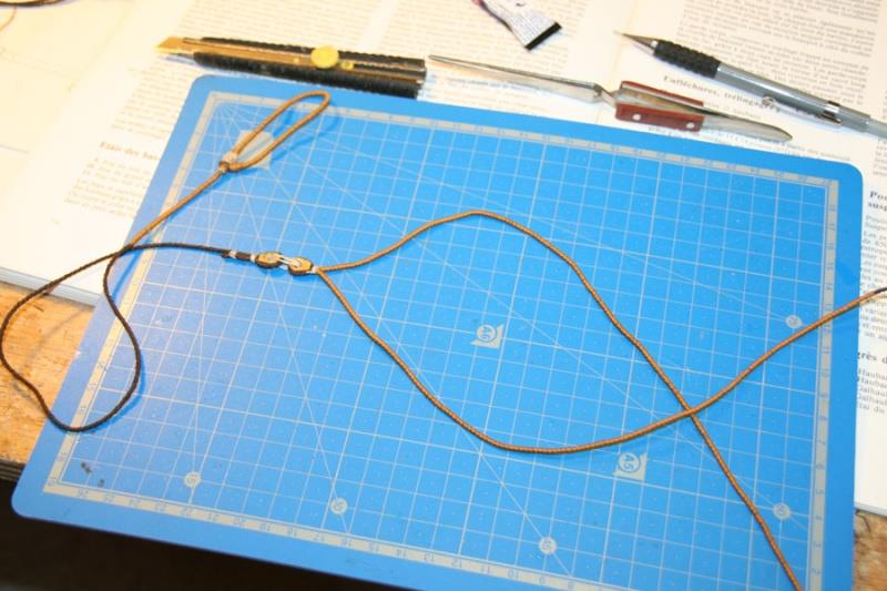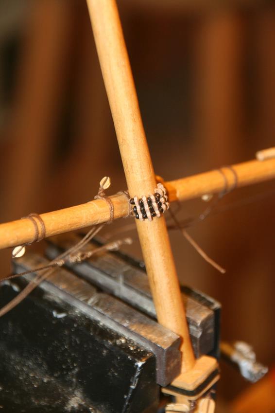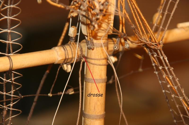 mise en place de la drosse de vergue sur le grand mât (bas mât ) |
