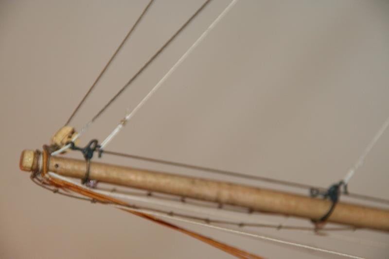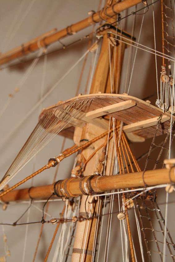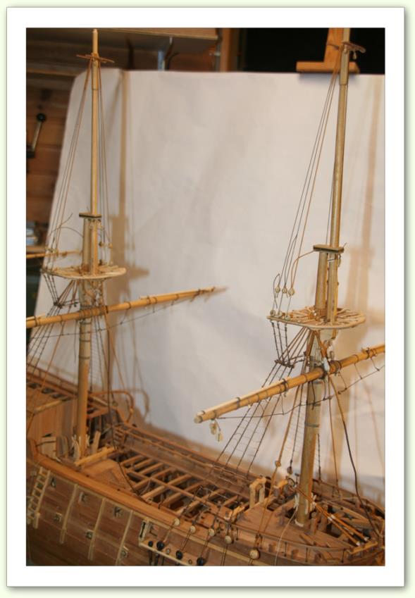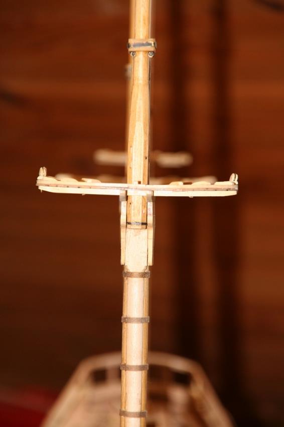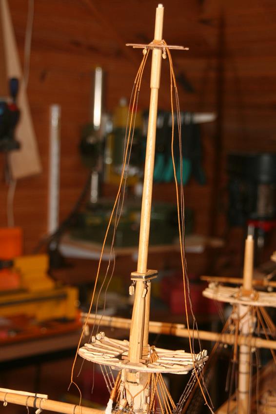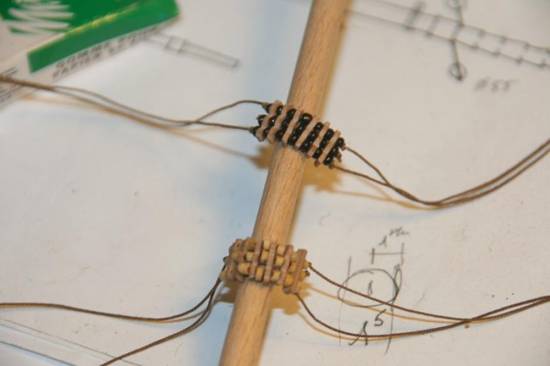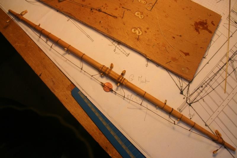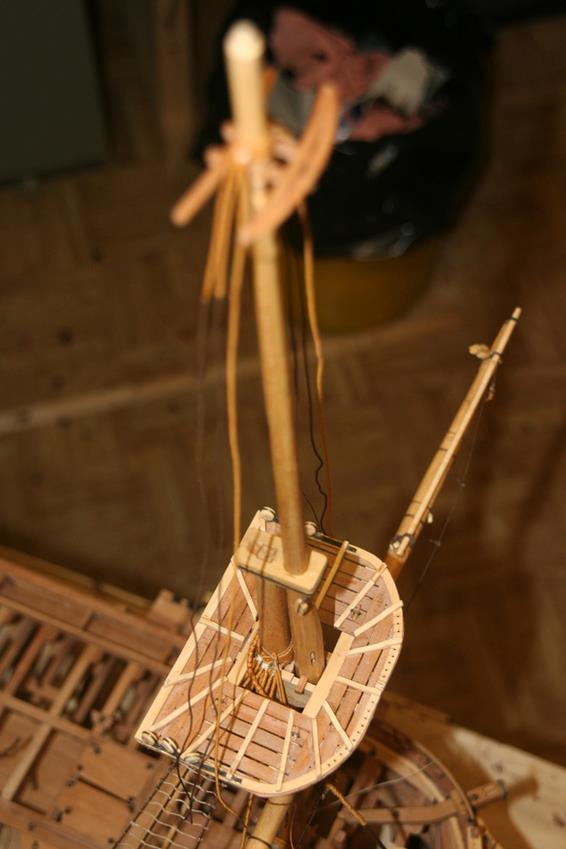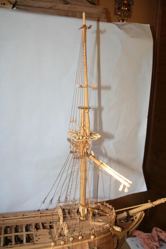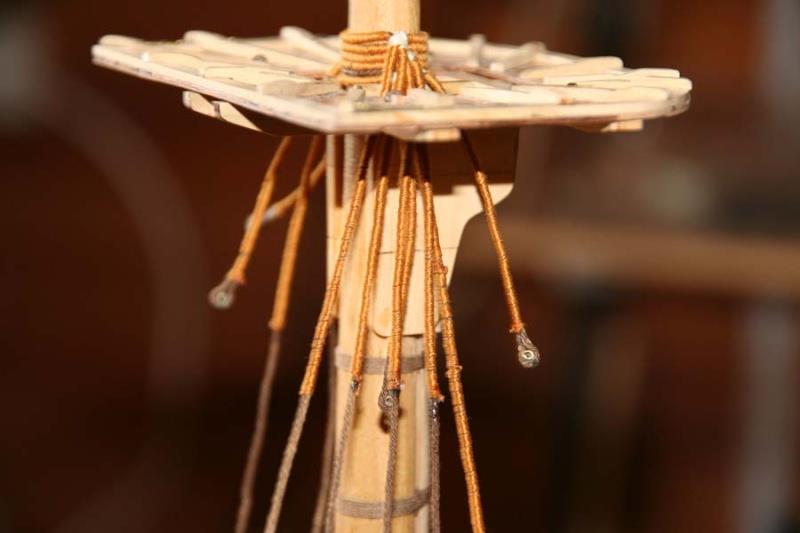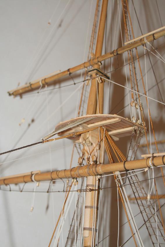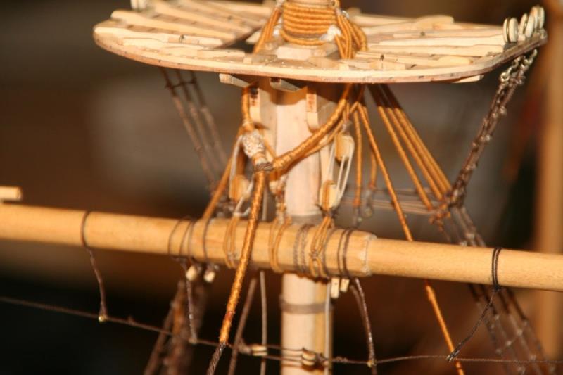 mise en place de la drosse de vergue sur le grand mât (bas mât ) |