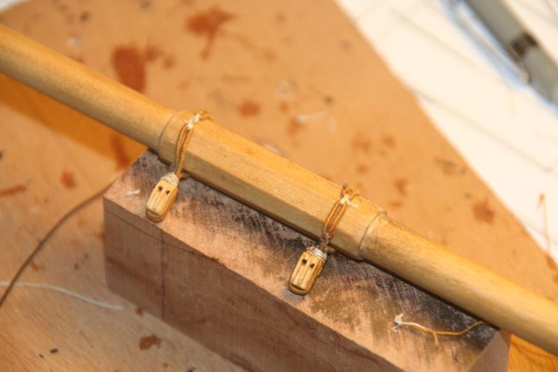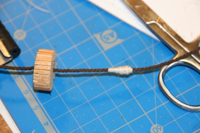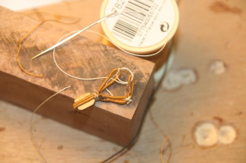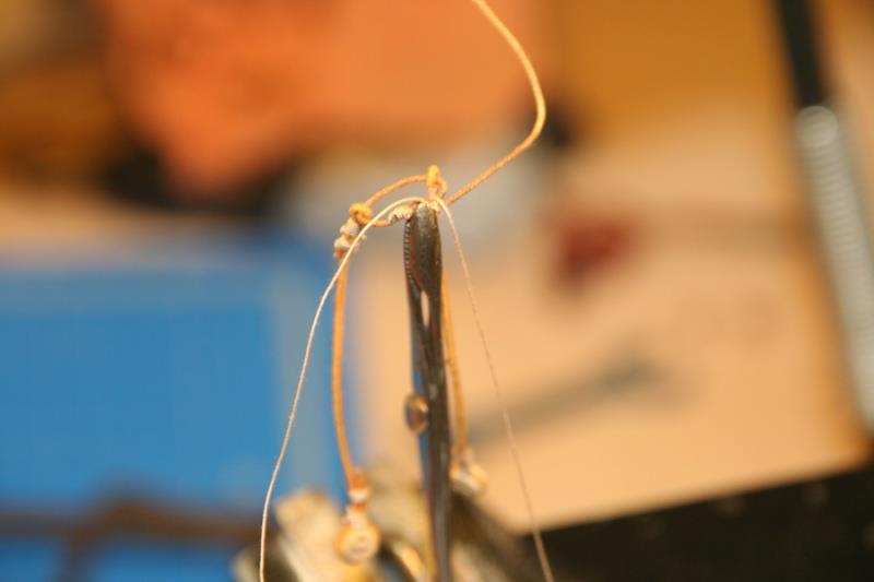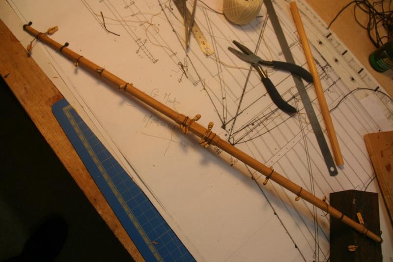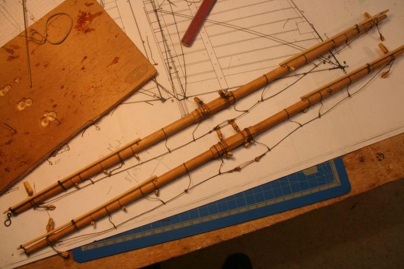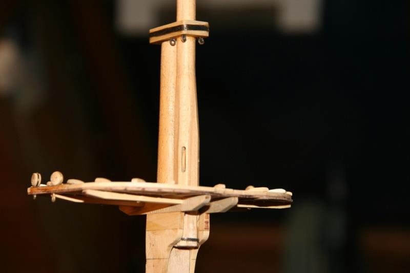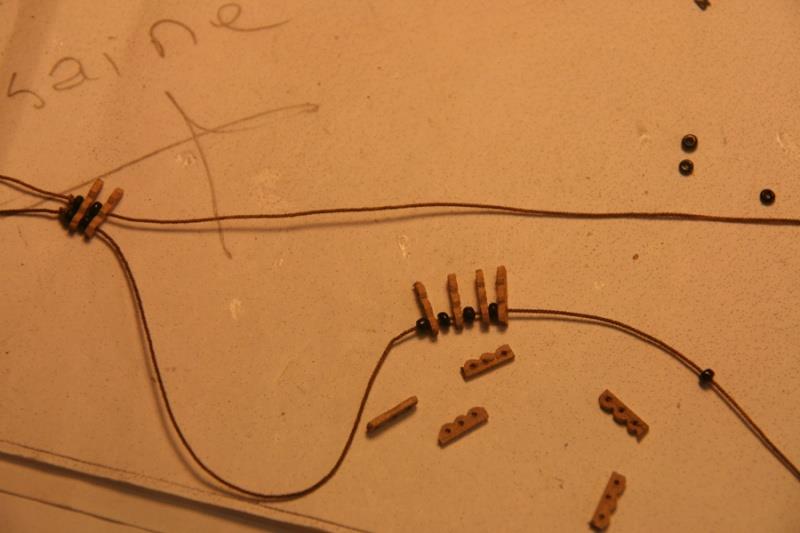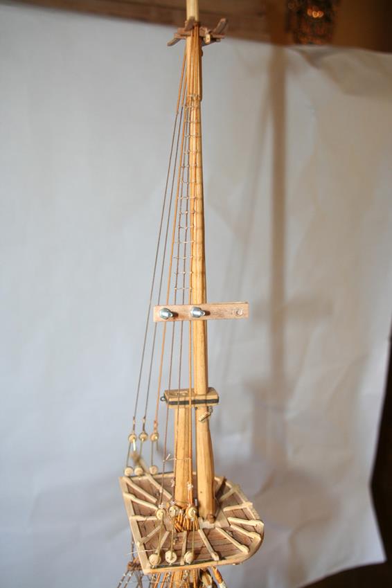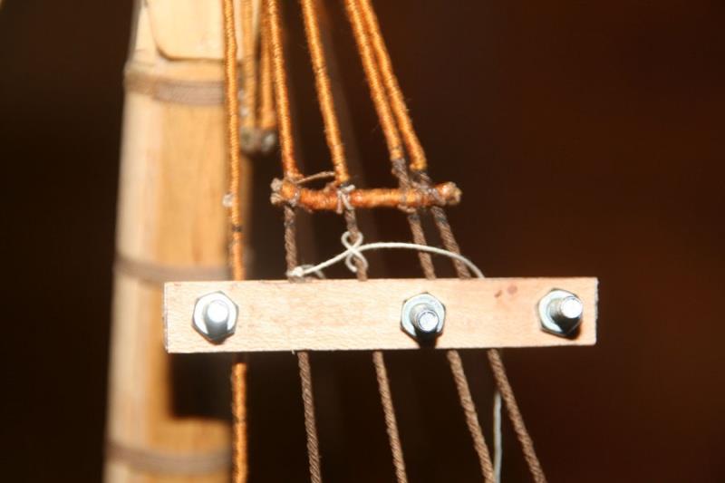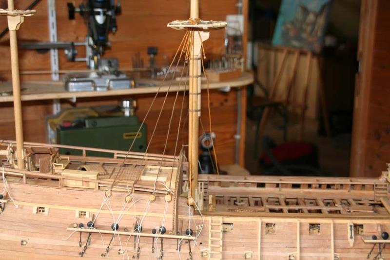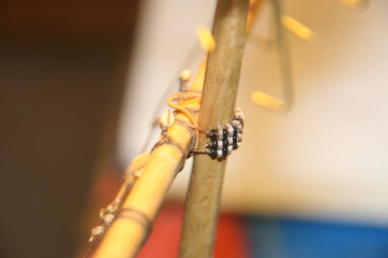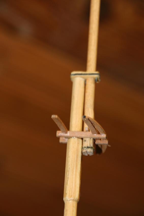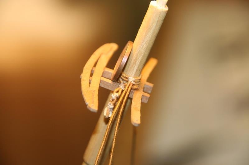 mise en place de la drosse de vergue sur le grand mât (bas mât ) |