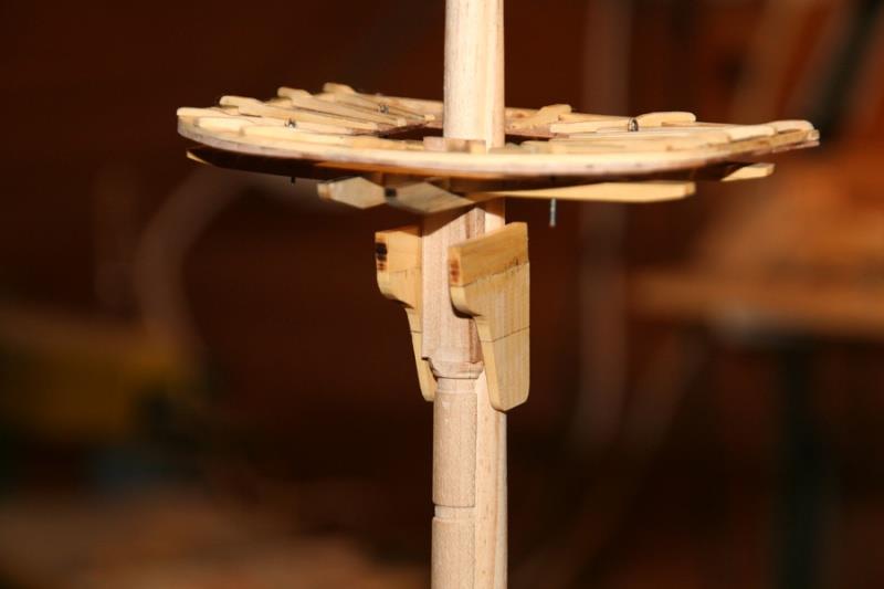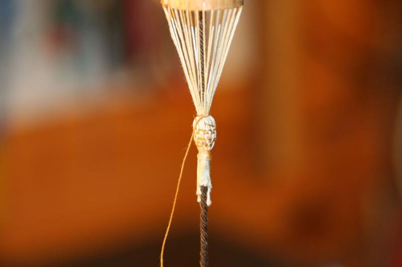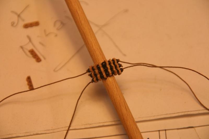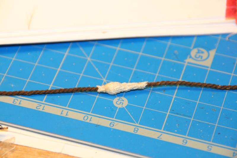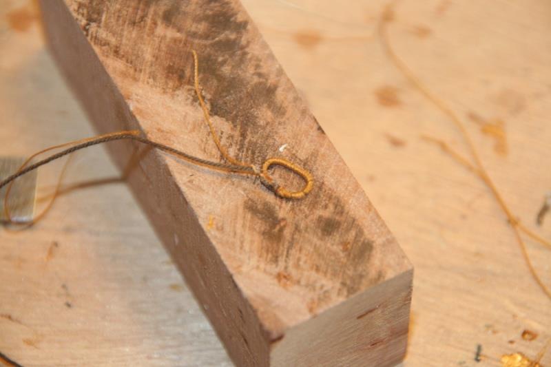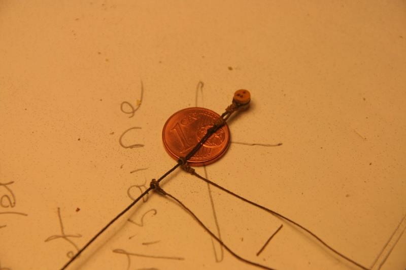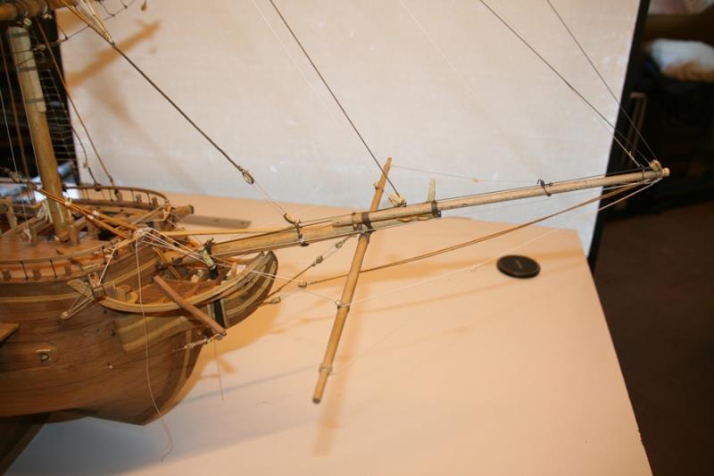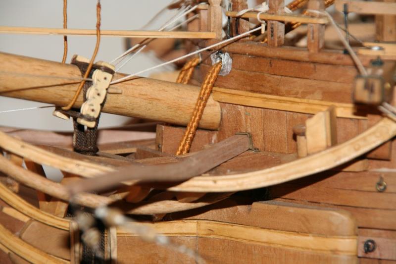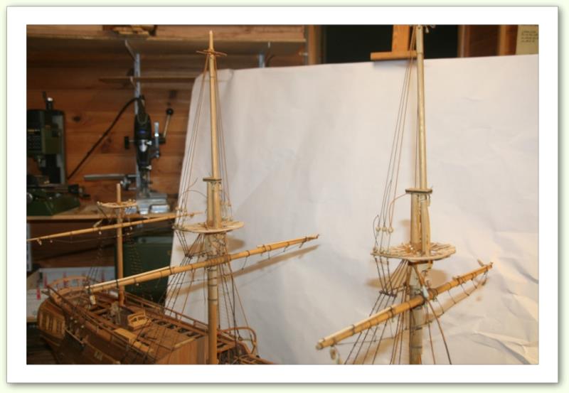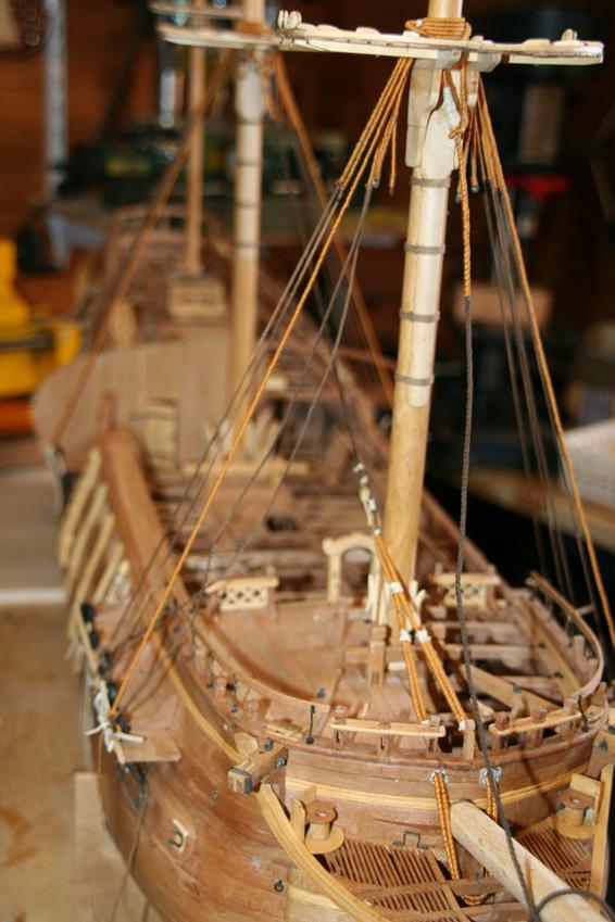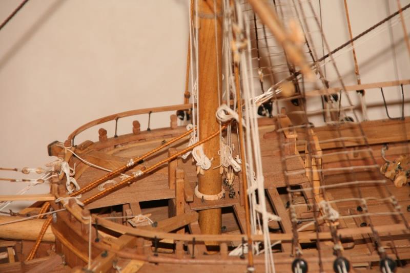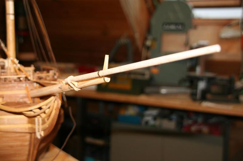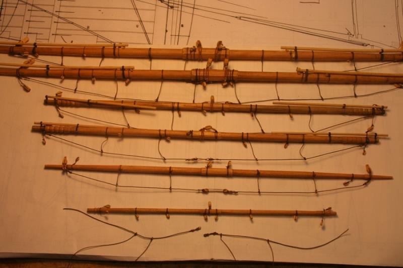 mise en place de la drosse de vergue sur le grand mât (bas mât ) |