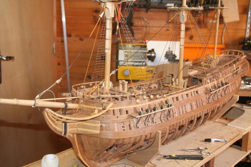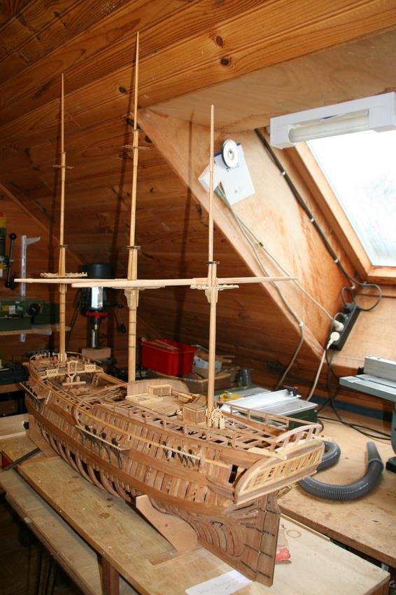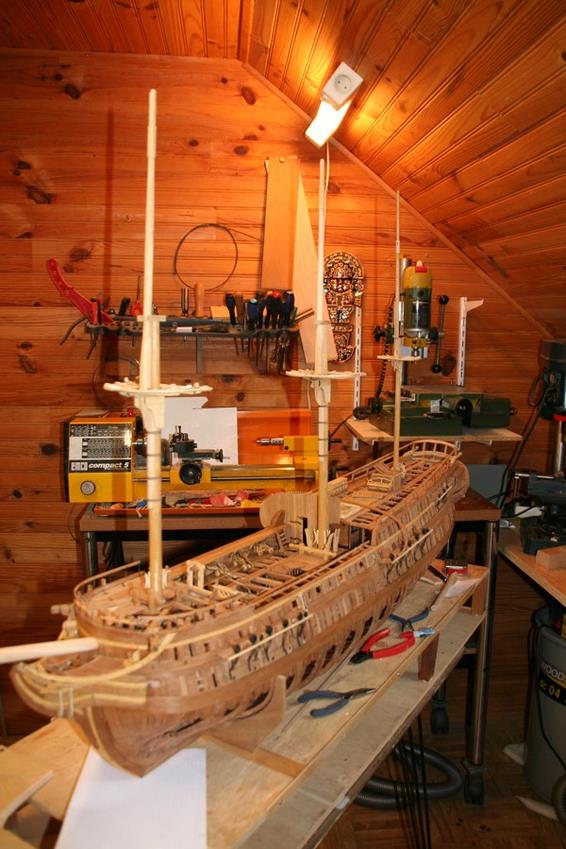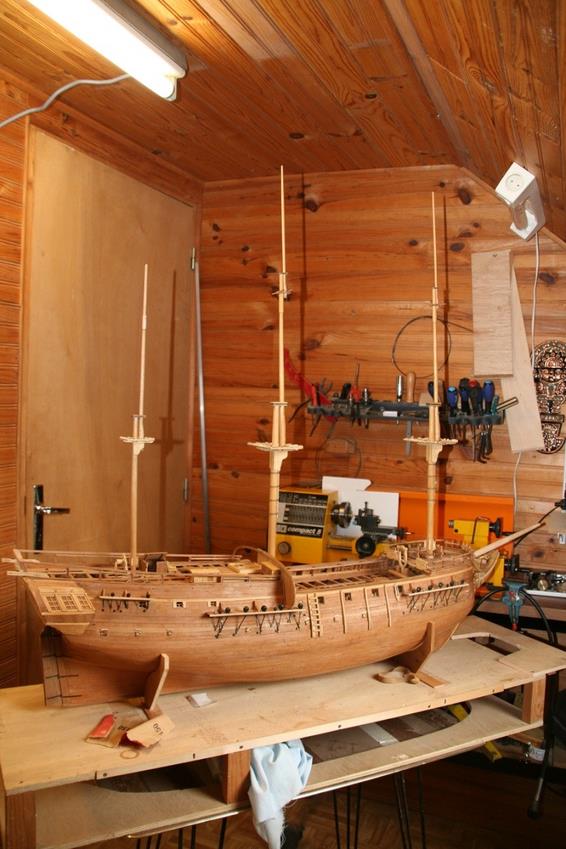Une aventure qui se termine et il ne reste plus àce magnifique modèle qu'à rejoindre la Flotte. Merci à Alain PIOT de m'avoir fait partager son savoir. Je pense qu'il sera utile à ceux qui veulent se lancer dans la construction d'un modèle de type arsenal. |