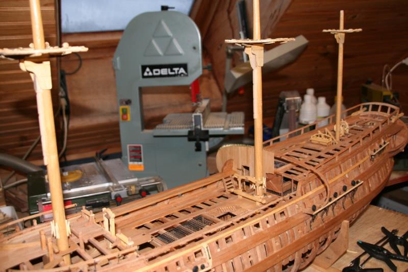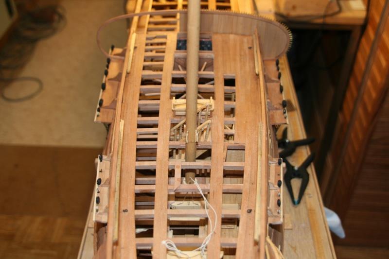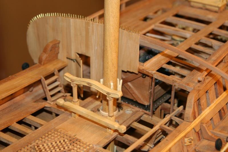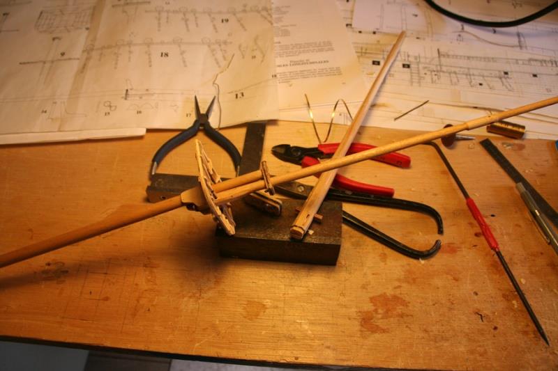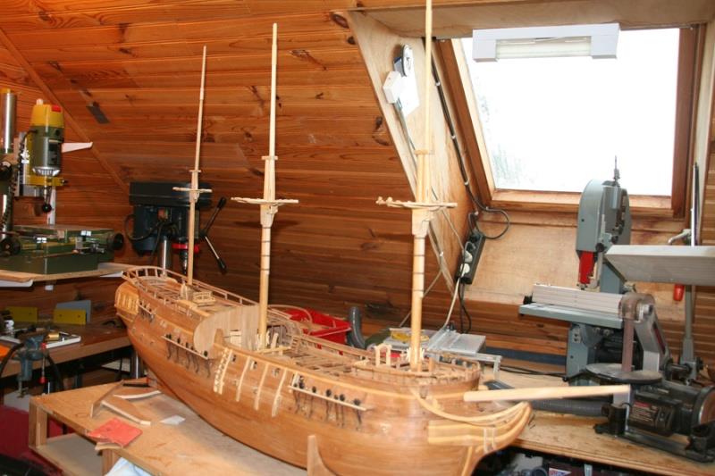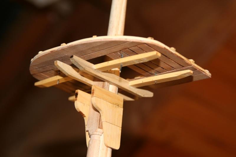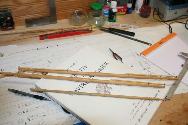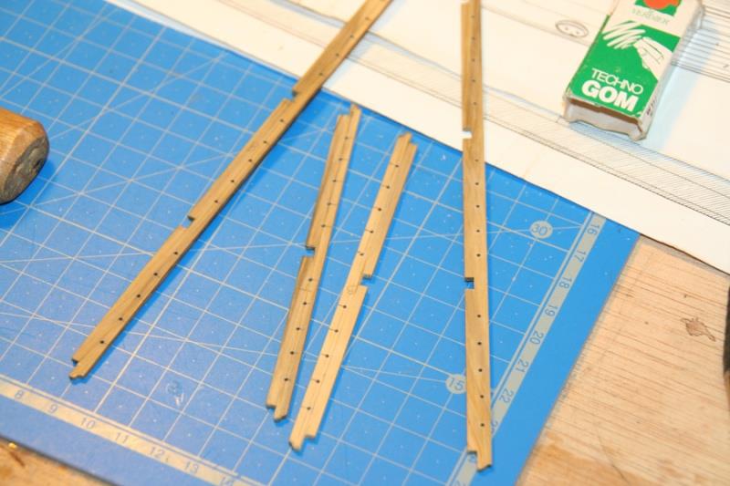finition de la cloison, pose des taquets à corne de mât , pose des jumelles et hunes