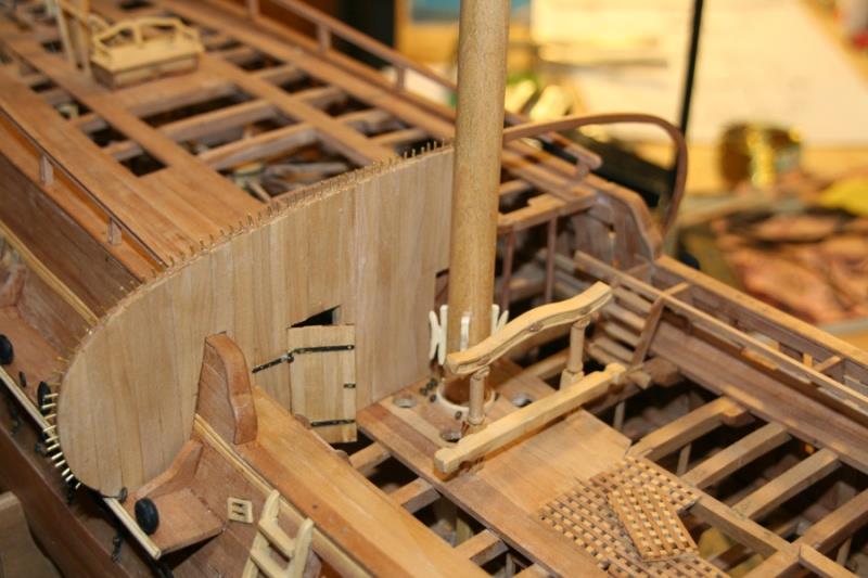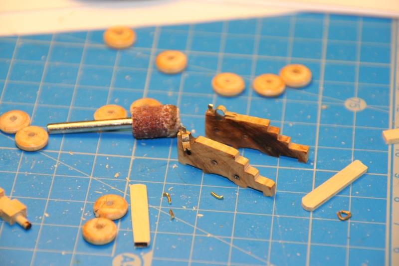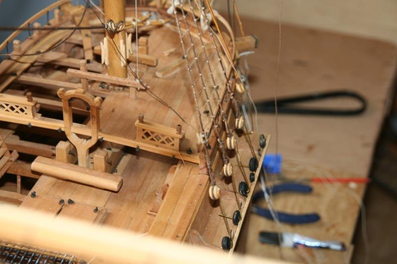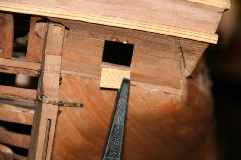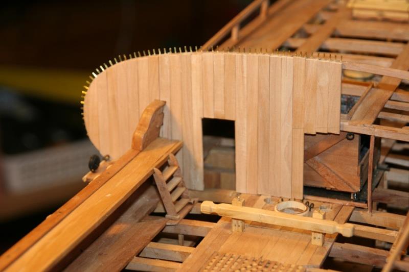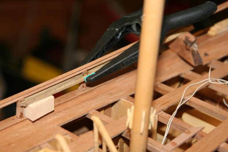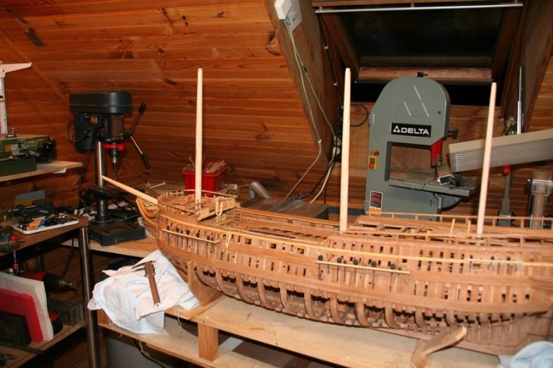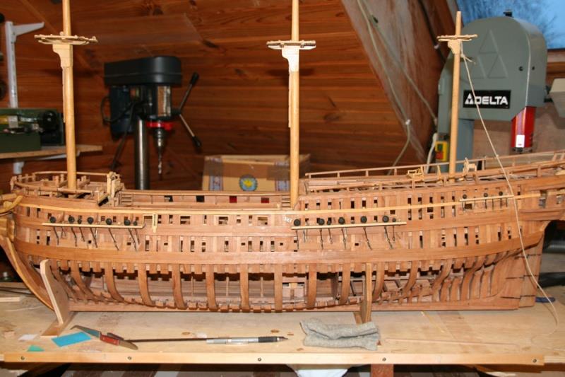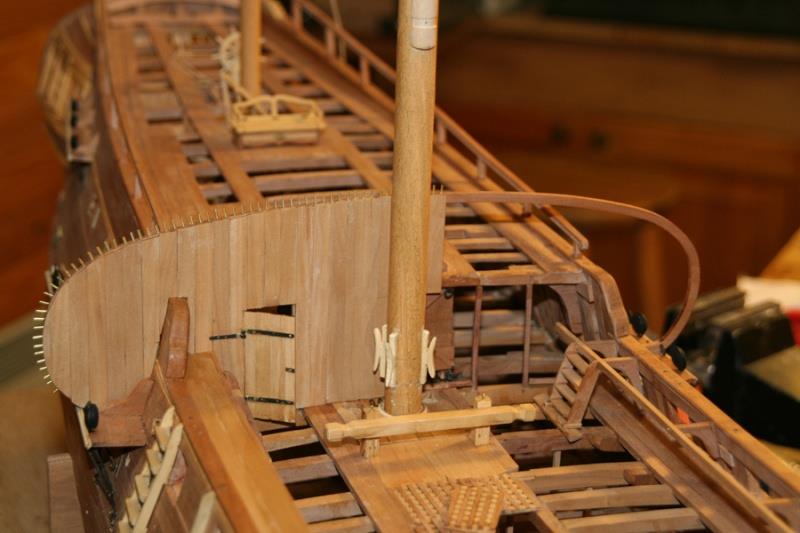 finition de la cloison, pose des taquets à corne de mât , pose des jumelles et hunes