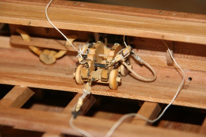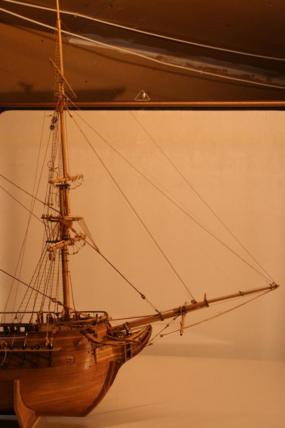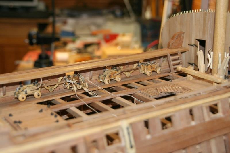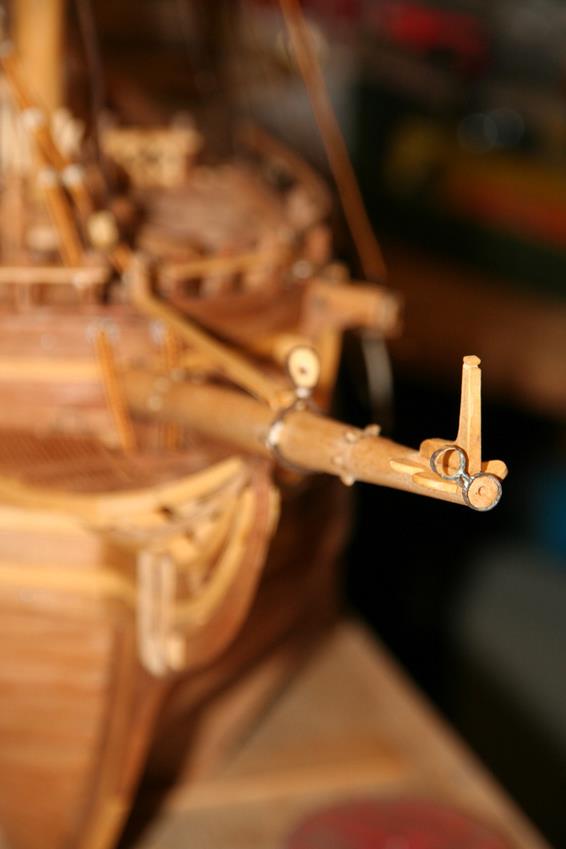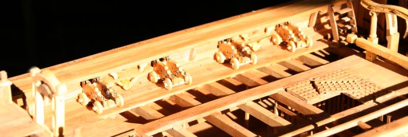 "La mer étant calme ,pas de vaisseau en vue,donc un seul canon en batterie, les autres rangés sous le passe avant."