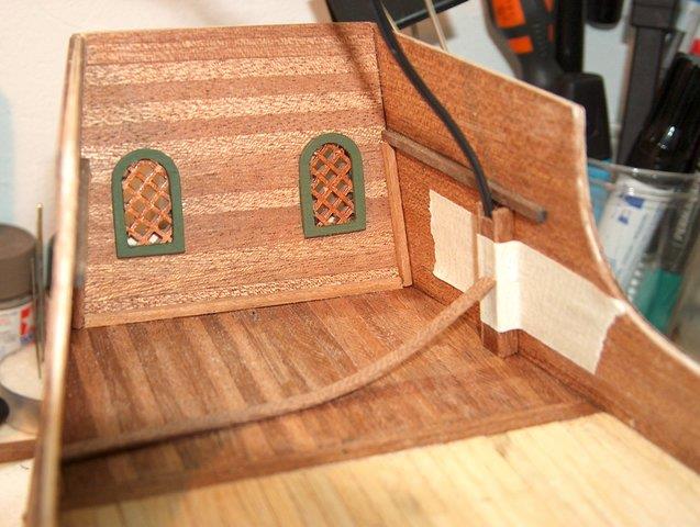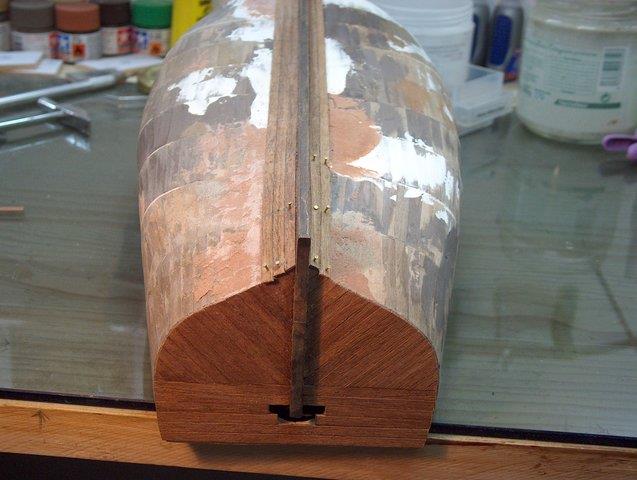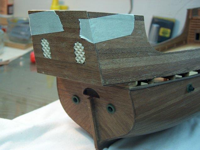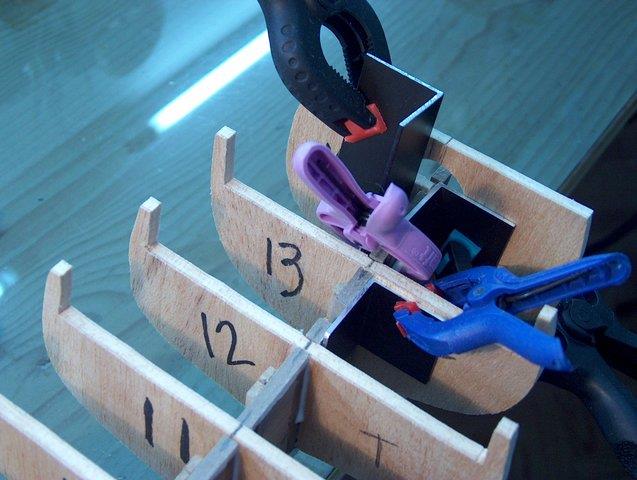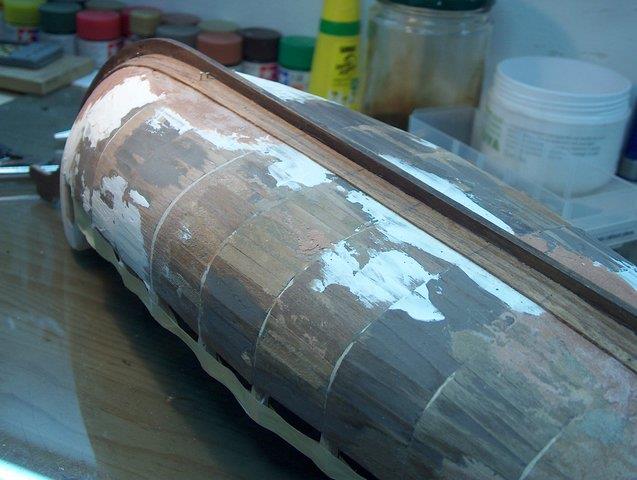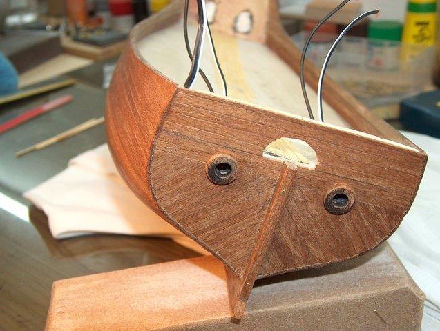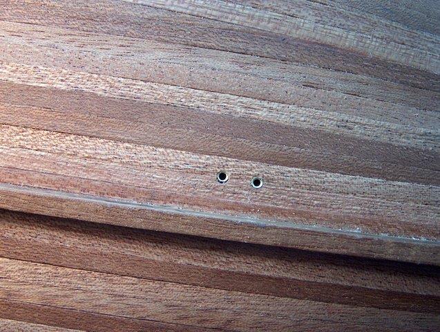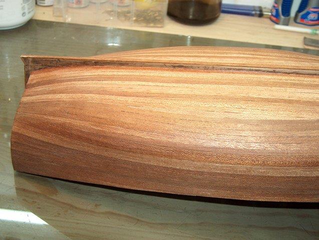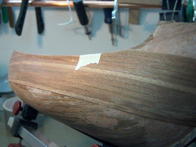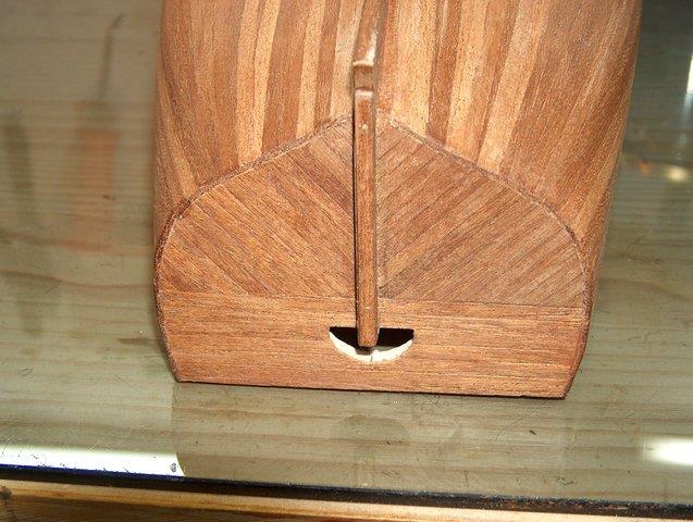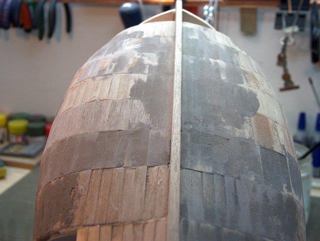 une méthode originale pour obtenir le premier bordé : collage de bouts de baguettes ! un excellent collage est obtenu en chanfreinant les couples et les bouts de baguettes. Ensuite, un bon ponçage et de l'enduit ... pour le bloc avant, épaisseurs de contreplaqué, ponçage et enduit ... |