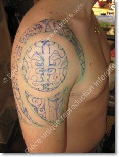 Le tatouage polynésien est, pour moi, avant tout d'inspiration marquisienne. Il possède une âme et un charme étrange malgré ses apparentes lignes géométriques. Les lignes noires qui finissent pas bleuir sont mises en valeur par la peau dorée ... J'ai bien pensé me faire tatouer l'épaule ... mais vous voyez ça sur ma beau blanche qui commence à se ratatiner !