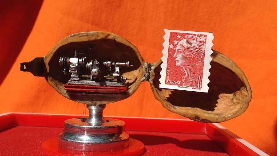 |  | La perceuse vue dans l'atelier, elle tourne,au milieu d'une foule de couteaux dans des noyaux de cerises !