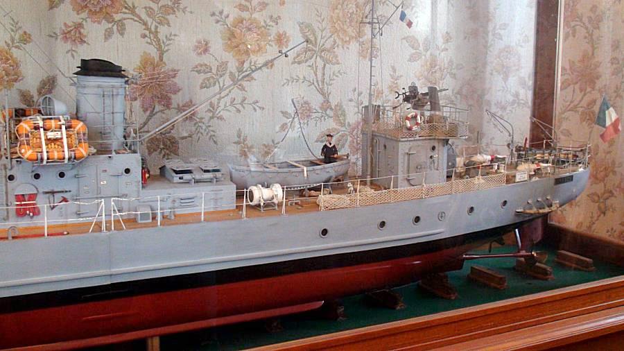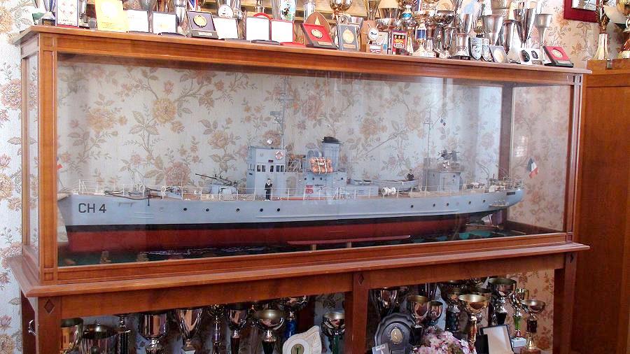 Chasseur de sous-marins, CH 4, "Dragon" au 1/25ème. Il se transporte coupé en 2, au niveau de la cheminée. Les coupes et les médailles, Marcel ne sait plus où les mettre ...