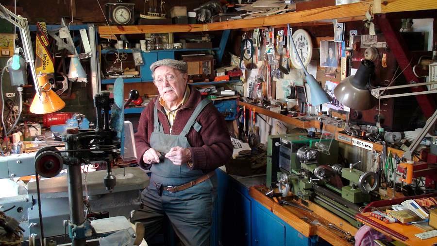 |  | Marcel dans son atelier. A noter la perceuse et le tour ... |