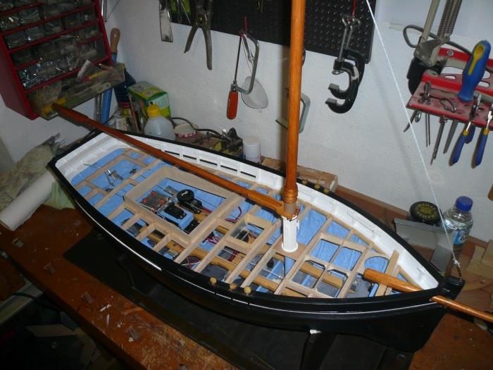 | les dernières photos de Didier : la chaloupe est terminée et prête pour de belles navigations !Un travail superbe. |