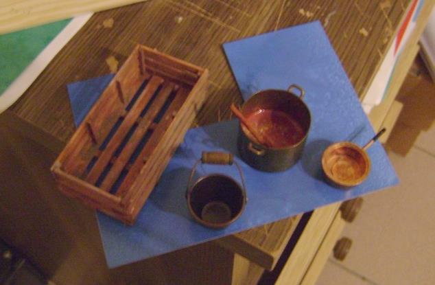 batterie de cuisine, gouvernail et mobilier |