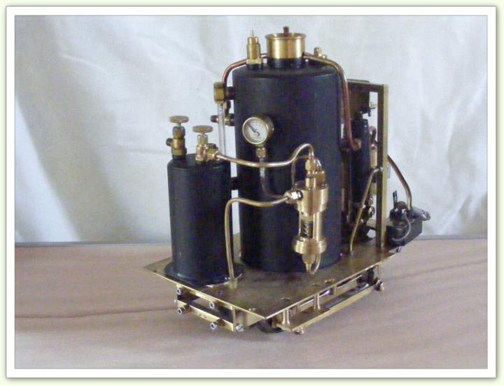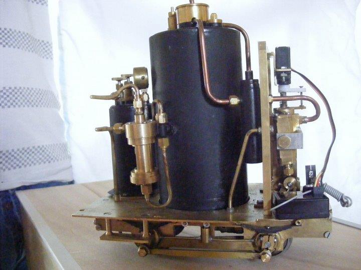 Que faut-il admirer le plus ? L'ensemble ou le groupe vapeur ? Les deux, je pense. A noter un merveilleux petit régulateur de gaz dont Jean Paul livre les plans - les plus simples que j'aie jamais rencontrés - dans le MRB 547 de juin 2009. |