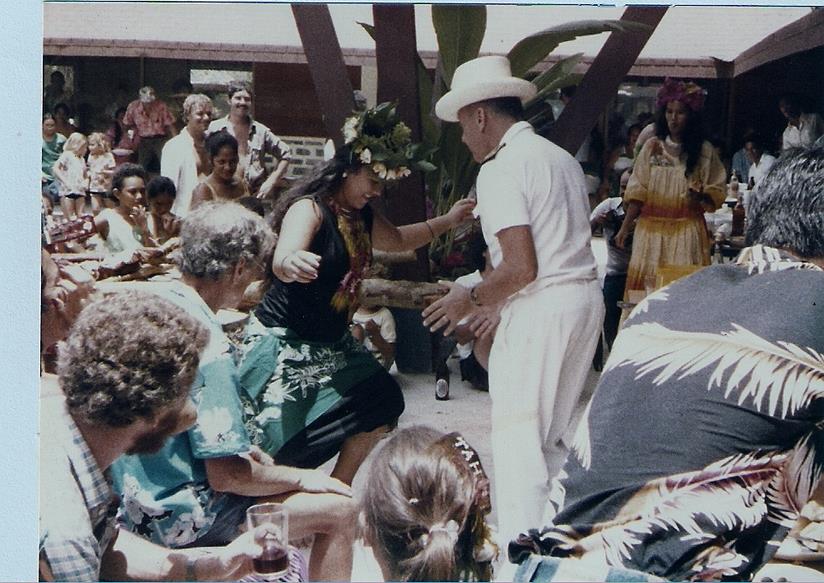 Les "Vahines" s'assoient en cercle, le tempo s'accélère, les regards brillent, des sourires irradient ... Vous êtes pris car vous êtes encore là ! Une "vahine", à qui on ne peut pas refuser, vient de se détacher du groupe et vous invite ... Poli vous vous exécutez et ...un déferlement , une tempête, mieux, un ouragan de rires. Vous vous êtes essayé, maladroitement, il le faut le concéder, à "singer" le "tamoure" ...