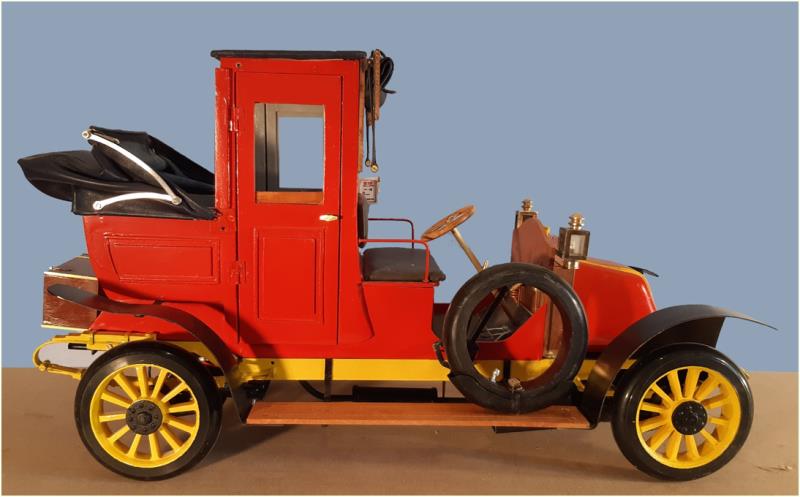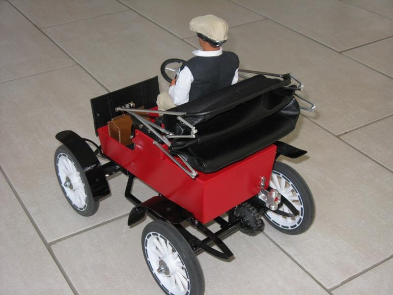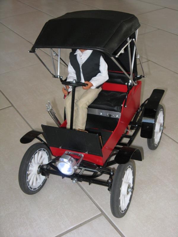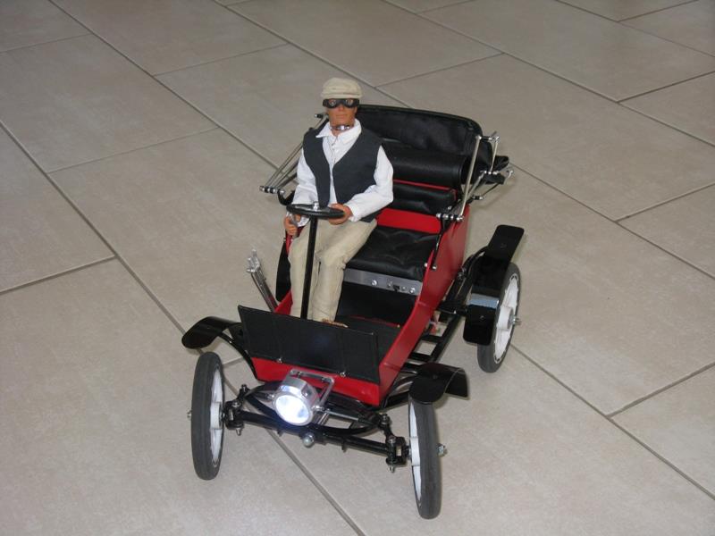 J'ai commencé il y a maintenant 6 ans par une Jewel de 1907. c'est ce que l'on pourrait appeler une calèche sans cheval et qui a été construite sous licence par une multitude de constructeurs surtout aux Etats-Unis avec la même appellation "runabout". J'ai choisi ce véhicule pour sa simplicité et aussi car il y a un volant (c'est plus parlant pour les jeunes que la "queue de vache"). Voici la vraie. |