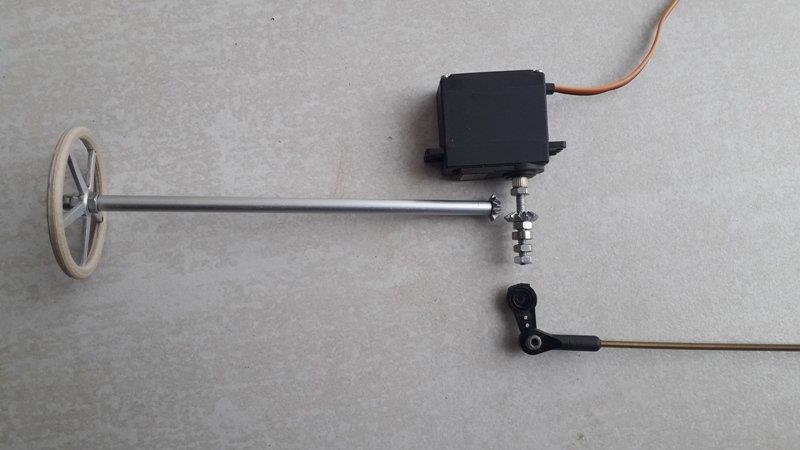 Le servo qui assure la direction fait également tourner le volant par l'intermédiaire de pignons coniques provenant d'un différentiel.
