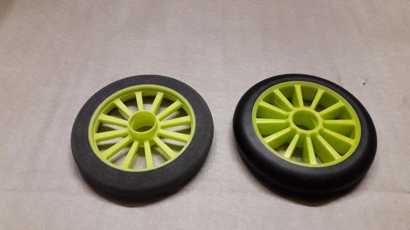 Quant aux roues de la voiture et du camion, j'ai utilisé des roues de trottinette de 125mm de diamètre ayant le bon nombre de rayon de chez décathlon.