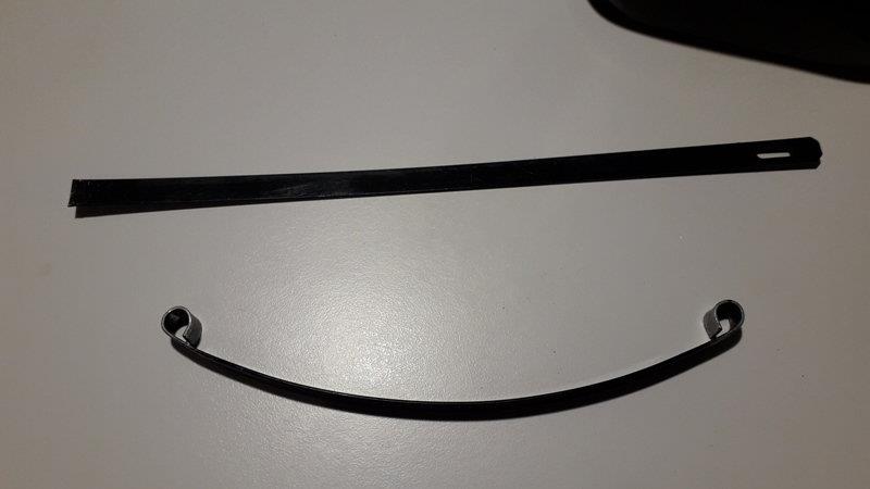 |  | Les lames de ressorts cette fois sont réalisées avec des baleines d'essuie-glaces. Il faut chauffer à rouge les extrémités pour former les boucles. |