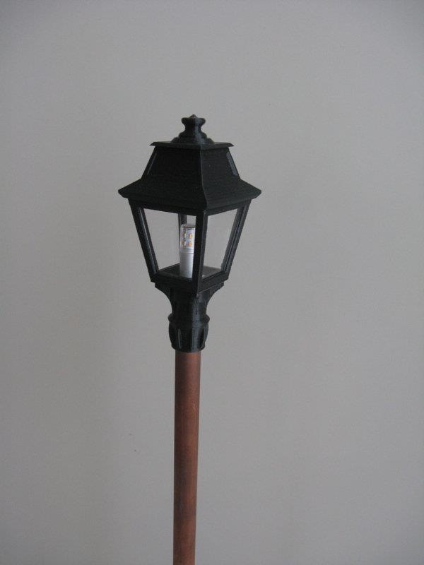 Le lampadaire dont le pied et la lanterne sont en impression 3D. Le poteau est un tube cuivre de 14mm.