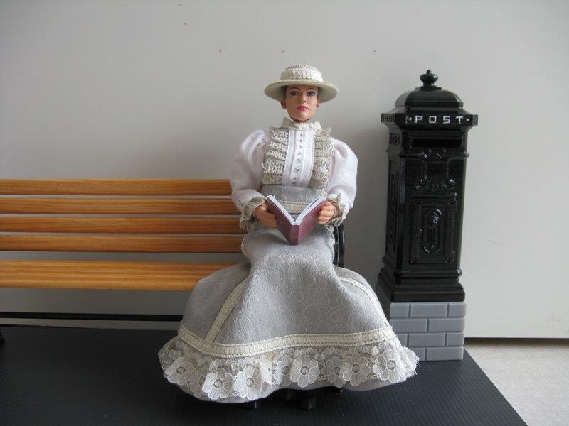|  Ou encore une demoiselle sur le banc qui lit un livre. Cette dernière est une "copie" de celle sur le triporteur. Elle est aussi animée à l'aide d'un automate Arduino placé dans la boite aux lettres. |