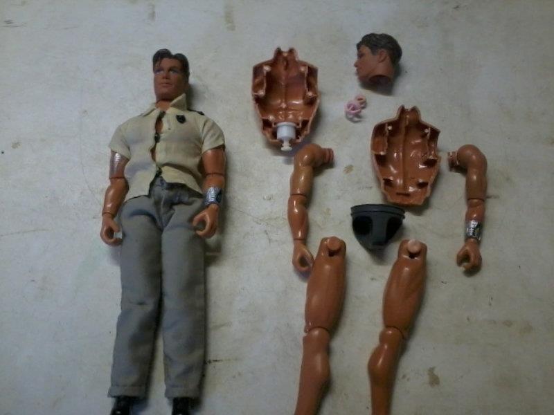 les personnages | Voici quelques photos de détails de mes personnages. Pour les hommes, j'utilise des figurines au 1/6 desquelles je ne garde que les bras et les jambes. J'achète les têtes séparément. J'ai modélisé le buste en deux version : un buste mince et un autre plus enveloppé, dans lesquels j'installe une platine servomoteur qui est standard pour les deux modèles. |