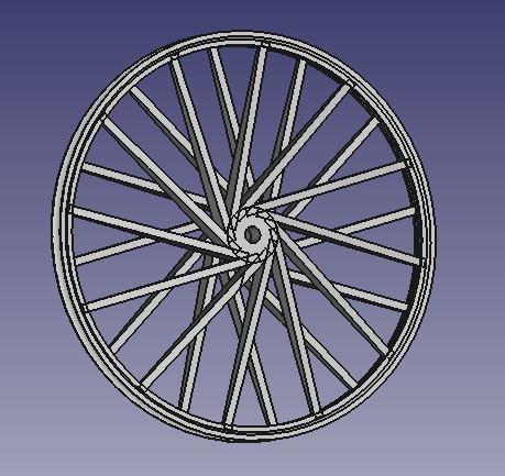 J'ai réussi à en modéliser et imprimer en 3D, il faut imprimer 2 demi jante comme celle-ci: |