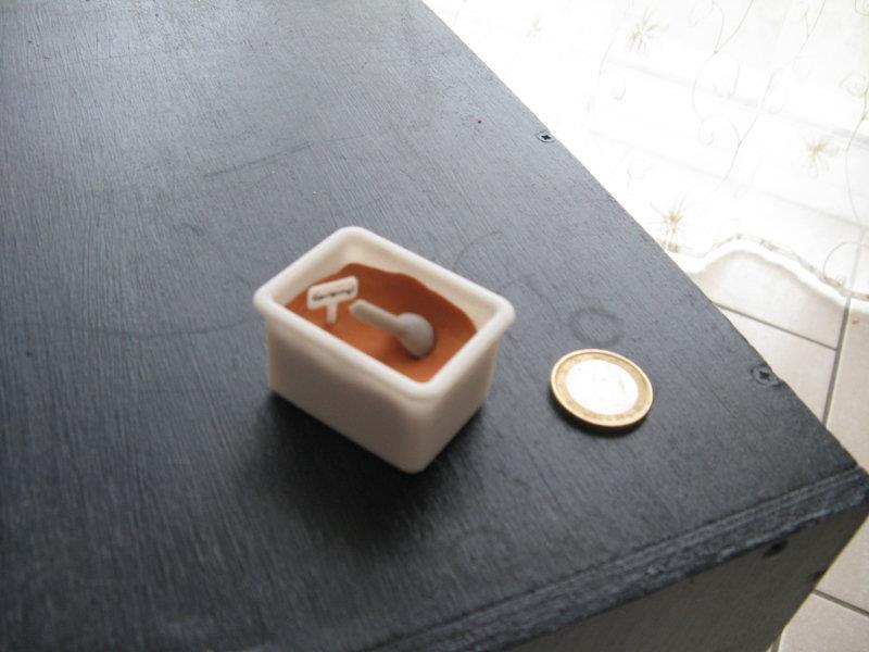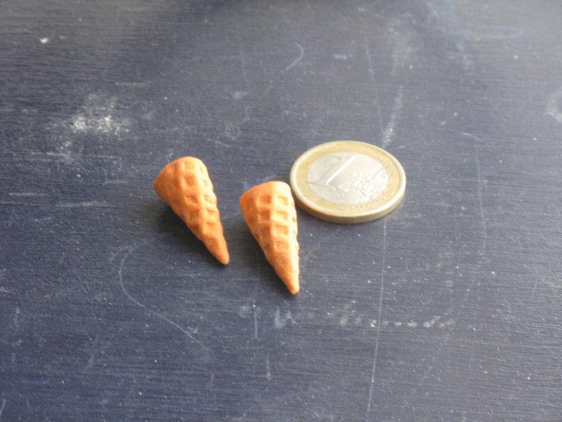 | Il a quand même la place pour la glace. les bacs sont imprimés. la glace et les cônes sont en pâte FIMO … j'ai fait environ 60 cônes!!! |