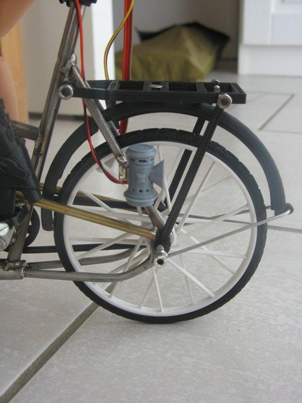 Sur la voiture, j'avais mis une sangle autour d'un tambour sur l'essieu arrière, mais cela ralentissait la voiture et fatiguait la batterie. |