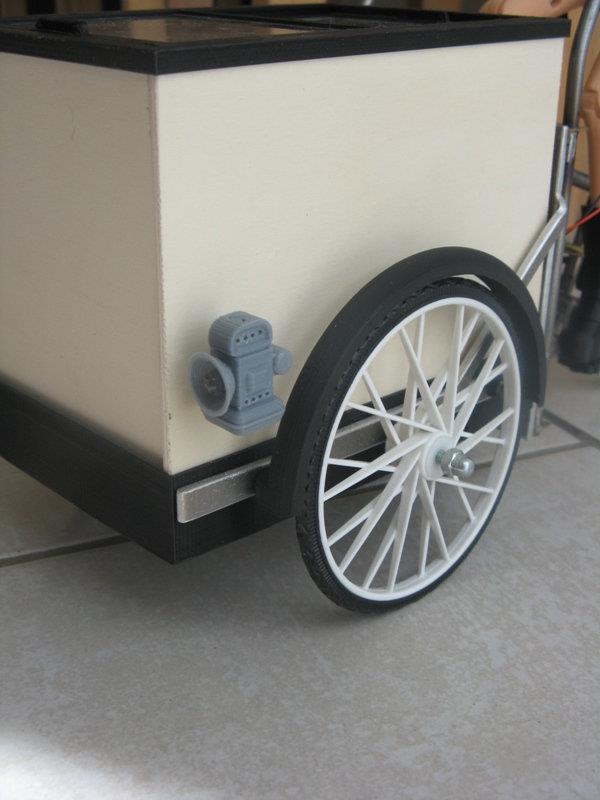 Avec l'imprimante 3D, j'ai également fait la caisse (les vitres coulissent), le pédalier, les garde-boues, les phares, le porte bagage.