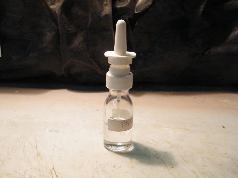 Récupérer un pulvérisateur nasal et le démonter. Enlever le brumiseur N°1 qui servira de bouchon par la suite. Démonter la pompe du bocal . Attention montage a force donc forcer un peu pour l'enlever. Nettoyage de l'ensemble et séchage.