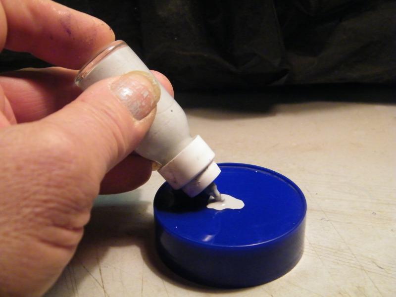 récupération de fonds de peinture en bombe | Lorsqu'il n'y a plus ou presque de gaz dans la bombe, il reste toujours un peu de peinture utile pour les retouches Percer un trou a mi-hauteur du corps suffisamment grand pour passer le bec de la pince coupante et couper en 2 sans renverser.