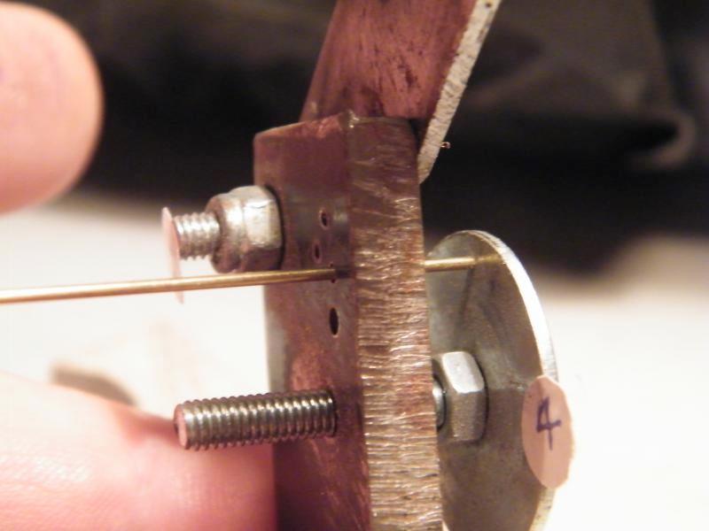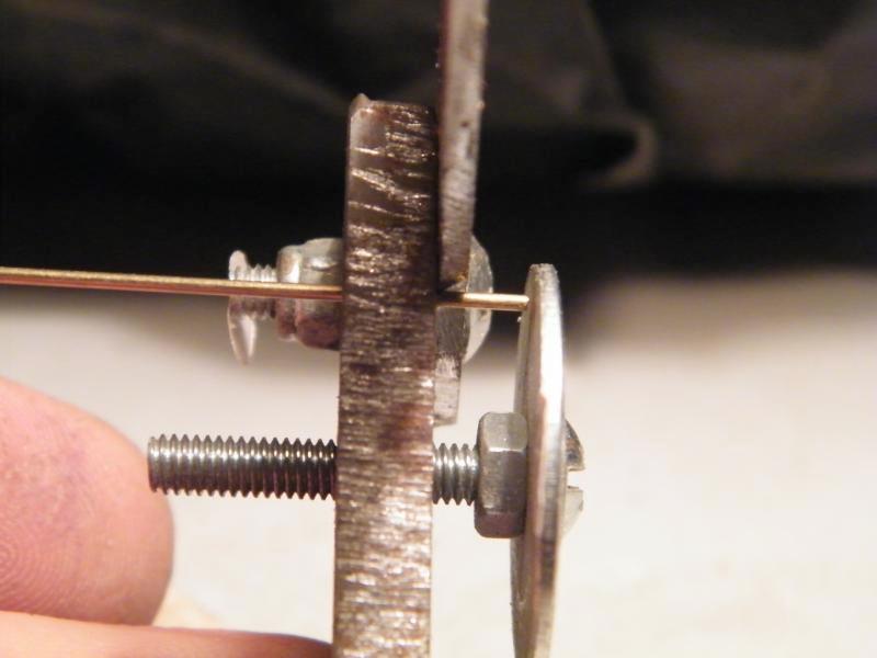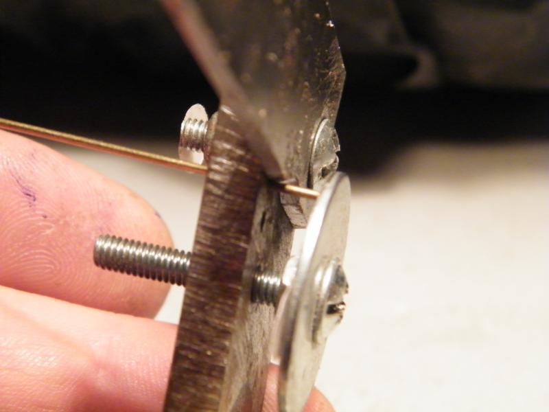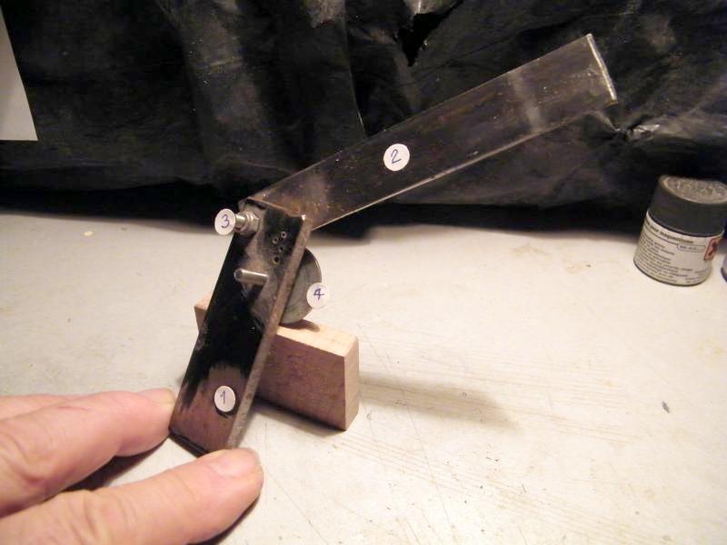 une petite cisaille pour fil de laiton ou de cuivre | Comme il m'arrive de devoir couper un grand nombre de petits bouts de fil de laiton à la même longueur (par exemple montants de rambardes ),j'ai bricoler ce petit outillage.