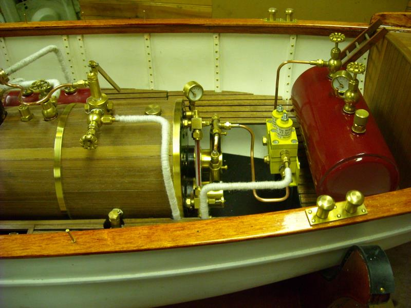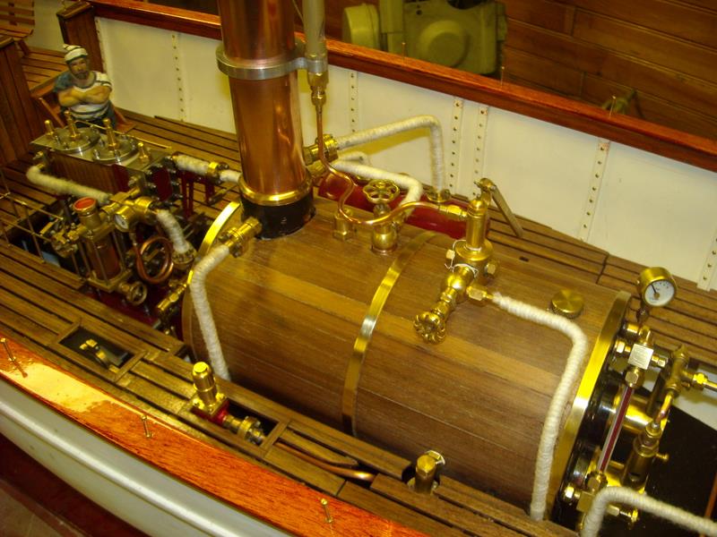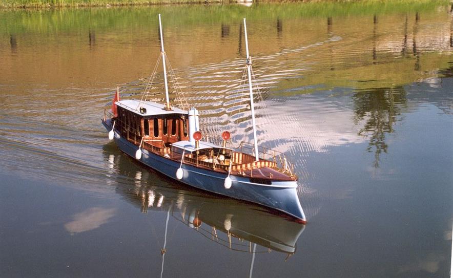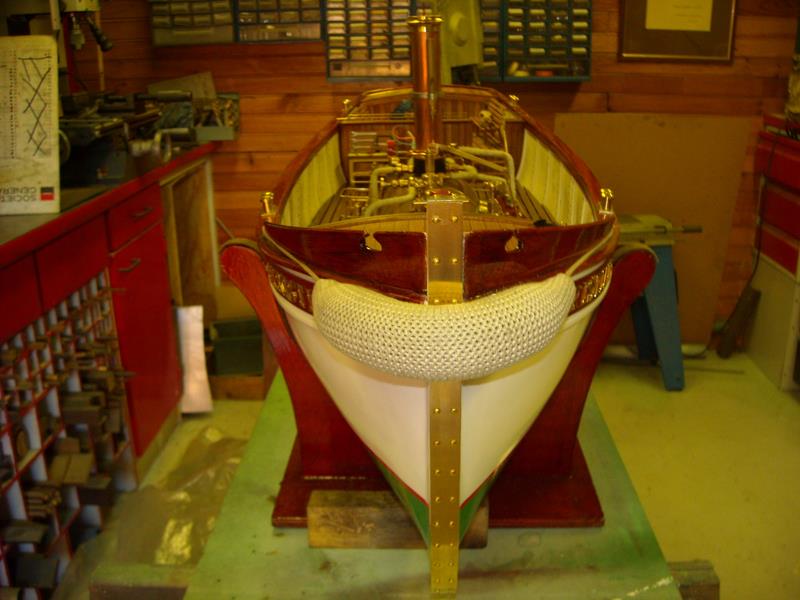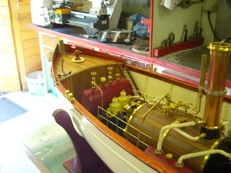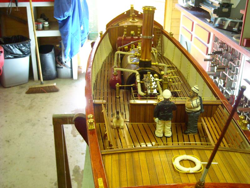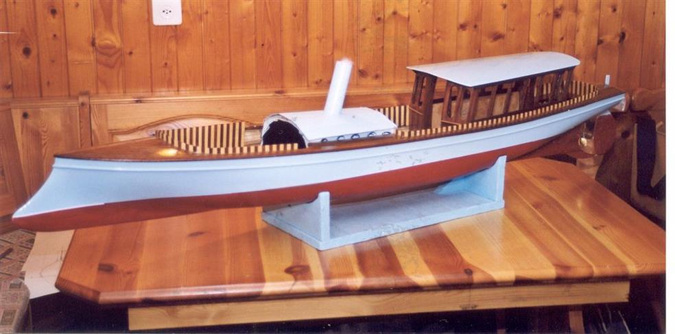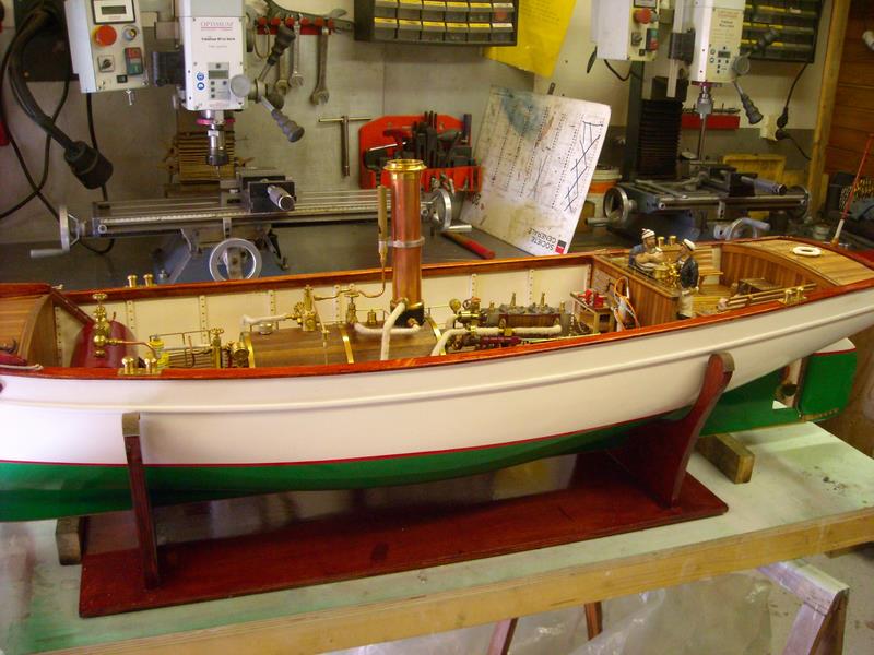| Gilbert joint les images de son autre vapeur dont il a commencé la construction en 2002 .La partie mécanique a été construite en collaboration avec son frère qui est mécanicien d' après un plan MRB,et le modèle est inspiré d'un site anglais de kit en modélisme naval .Il mesure 1,53 m et pèse 11 kg ;il lui a fallu 3 ans de travail et beaucoup de mise au point mais maintenant, il navigue merveilleusement bien.