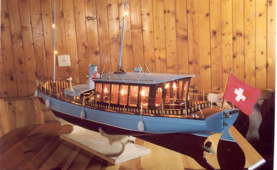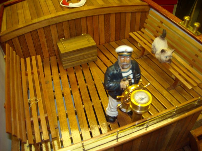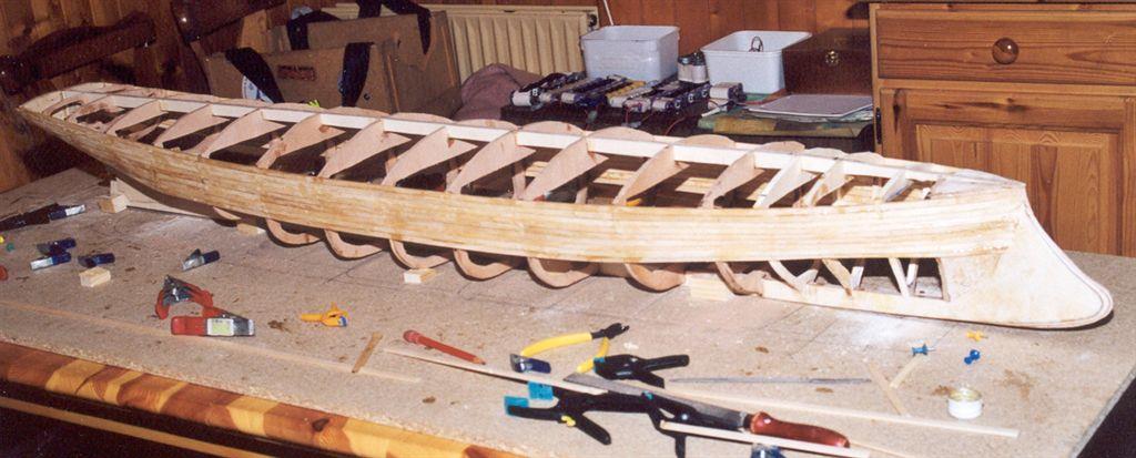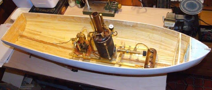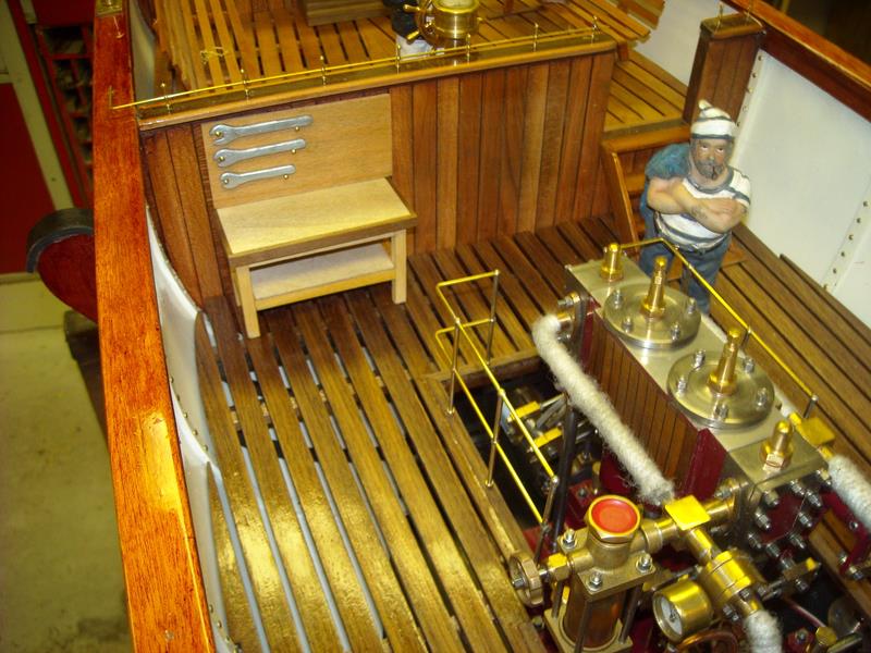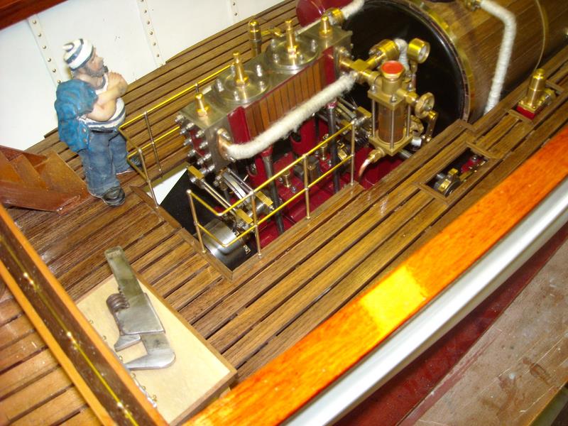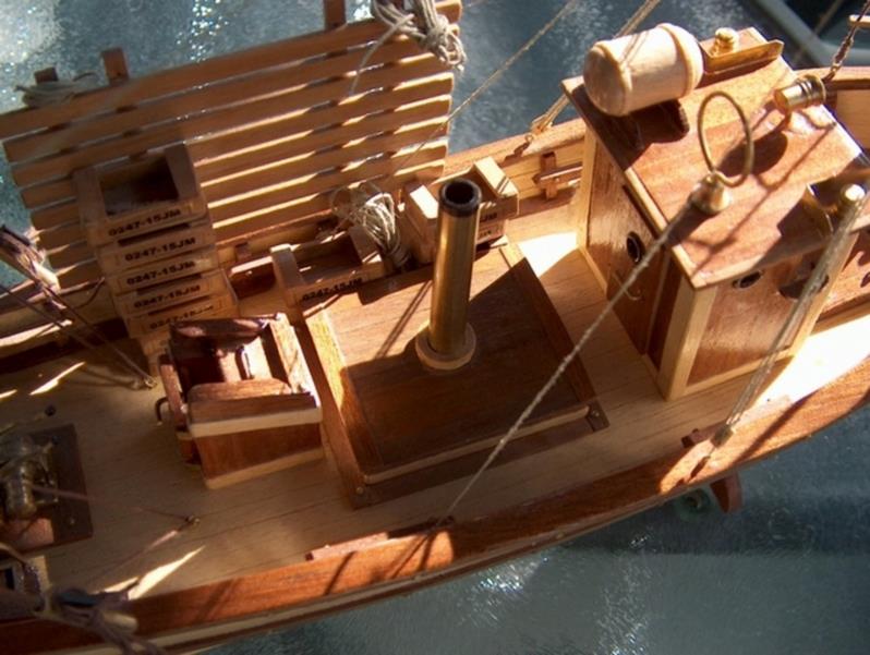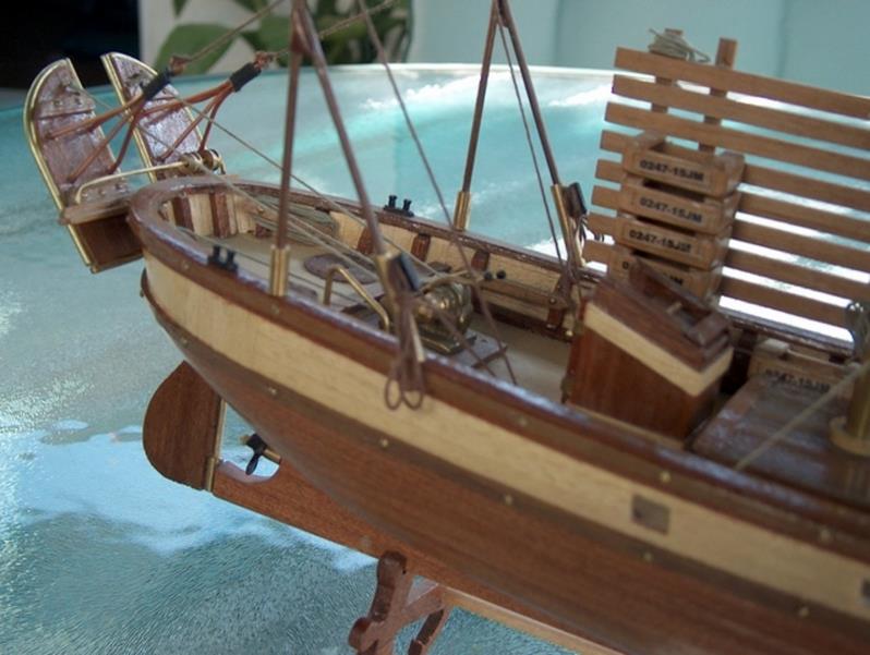 | Gilbert joint les images de son autre vapeur dont il a commencé la construction en 2002 .La partie mécanique a été construite en collaboration avec son frère qui est mécanicien d' après un plan MRB,et le modèle est inspiré d'un site anglais de kit en modélisme naval .Il mesure 1,53 m et pèse 11 kg ;il lui a fallu 3 ans de travail et beaucoup de mise au point mais maintenant, il navigue merveilleusement bien.