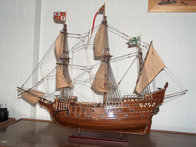 | Les bateaux les plus redoutables de "L'Armée Invincible" étaient les galions,des voiliers qui apparurent au milieu de XVI èmesiècle et qui furent les navires de guerre par excellence pendant cent cinquante ans. Le galion San Francisco était un des navires les plus brillants de son époque. Modèle construit en 2006.