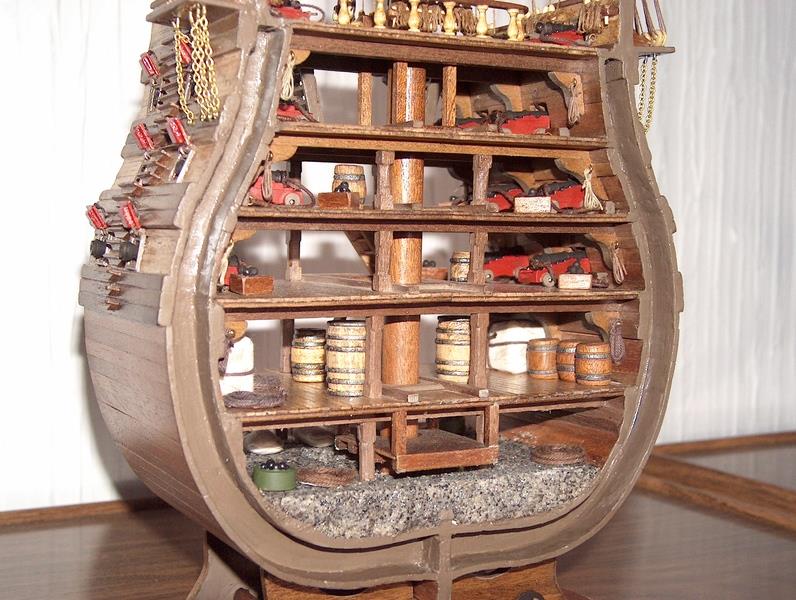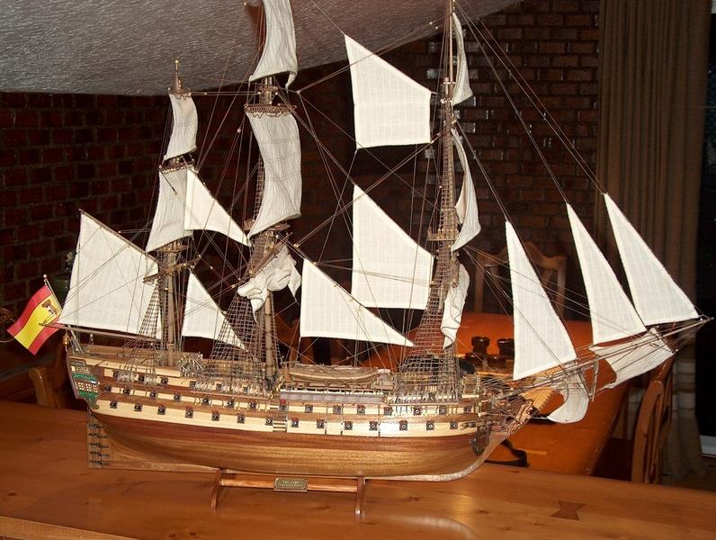 La dernière réalisation que Juan vient juste de terminer : une section transversale du puissant navire espagnol la "Santísima Trinidad".