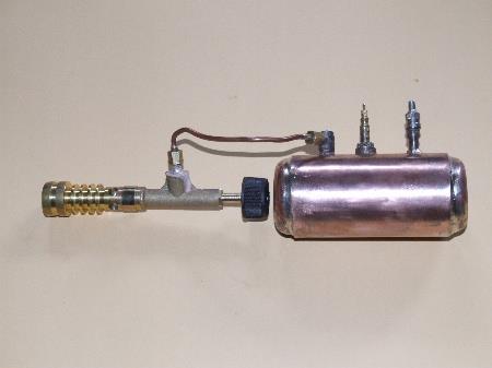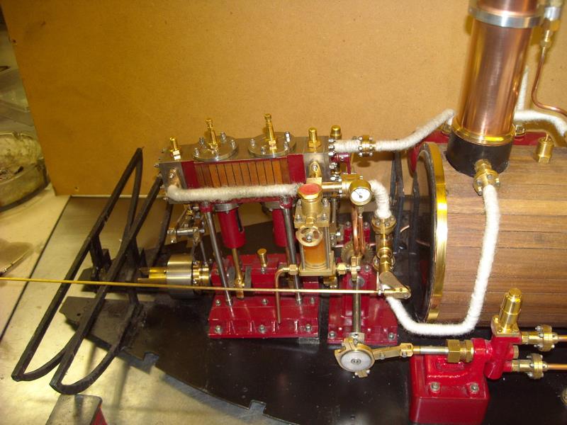 | | Patrick a fait fabriqué la chaudière (tube et fonds) mais tout son équipement est personnel sans compter le tank à gaz, la pompe, le régulateur ... et bien sûr le moteur. Un sacré travail pour un bien beau résultat ! |