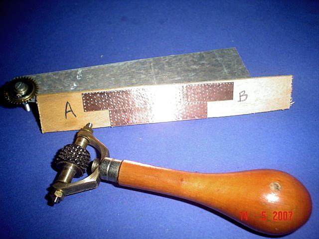 La molette obtenue avec le résultat. En A, marquage directement sur le cuivre, en B, marquage à l'envers.