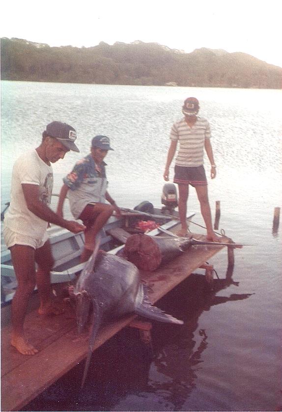 Avec sa petite pirogue (à peine plus longue que notre espadon !), il fallut à Roger des heures pour ramener la bête au quai du Collège, avec la crainte continuelle d'une attaque des requins. Ce sont les élèves du Collège de HAAMENE qui profitèrent d'un délicieux poisson cru.