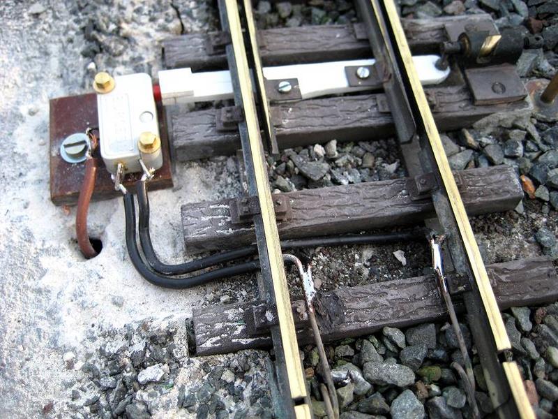 |  | Le captage des polarités est fait, ici, sur les shunts des éclisses, existantes sur tout le réseau pour améliorer la continuité du passage du courant (les éclissent s'oxydent). Le point milieu de l'inverseur (fil marron) traverse la table, pour remonter vers la pointe de cœur.