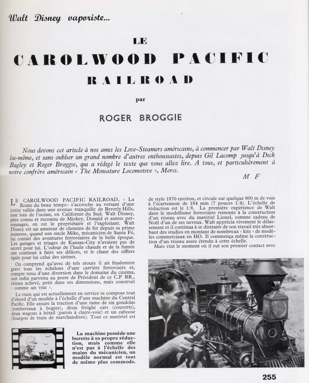nous rappelle que celui-ci était aussi un de nos ancêtres modéliste-vaporiste, il pratiquait sa passion en 7" 1/4. Vous verrez dans les pages ci-dessous que j'ai extraites de ma collection qu'il ne devait pas manquer de moyens.