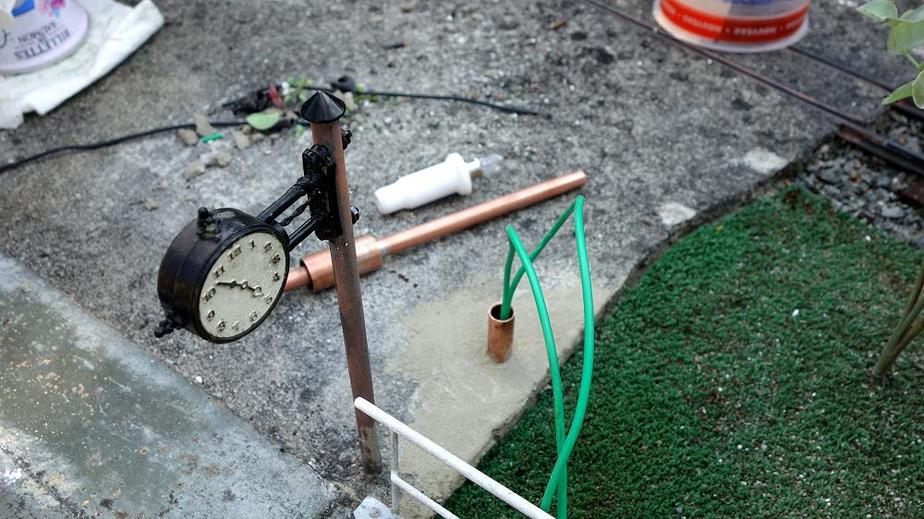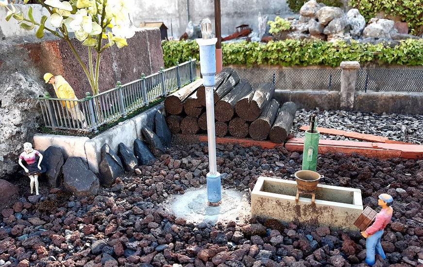 Fin de la réparation de la zone de la gare. Après la toiture réparée, le candélabre est neuf. Poteau électrique refait. Plante artificielle remplacée. Les intempéries vont pouvoir continuer leur travail de destruction lente et massive...
