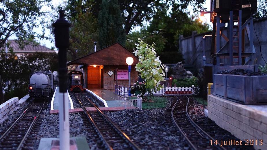 Le circuit de train est de nouveau opérationnel... Remis en ordre, nettoyé et remis en état (réparation de deux aiguillages, hors orage). Avec l'habitude, c'est assez vite fait, bien que démoralisant. Heureusement... HEUREUSEMENT que cette installation est à hauteur ! Je me félicite, à chaque intervention, d'avoir fait ce choix. Les mêmes remises en état, au sol, seraient un calvaire ! Rien que les feuilles de l'énorme prunus d'à côté...