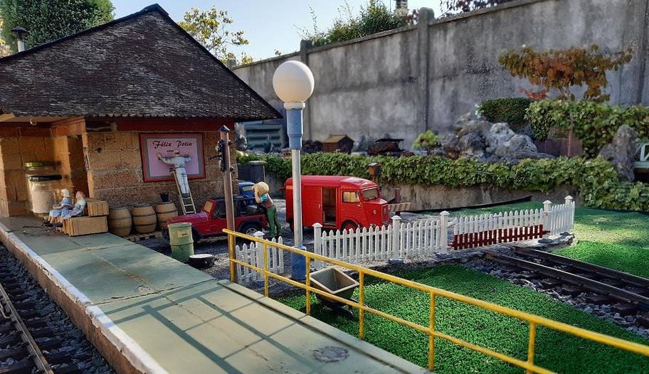| Le plateau vert, plus loin, a lui aussi été refait. Il protège les coffrets électriques du réseau.