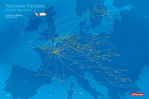 Air Tahiti couvre un réseau de près de 50 îles d'un rayon de 15 km à 1 600 km. Davantage de renseignements sur cette compagnie en se rendant sur : http://fr.wikipedia.org/wiki/Air_Tahiti