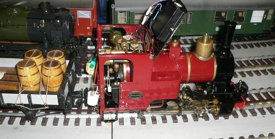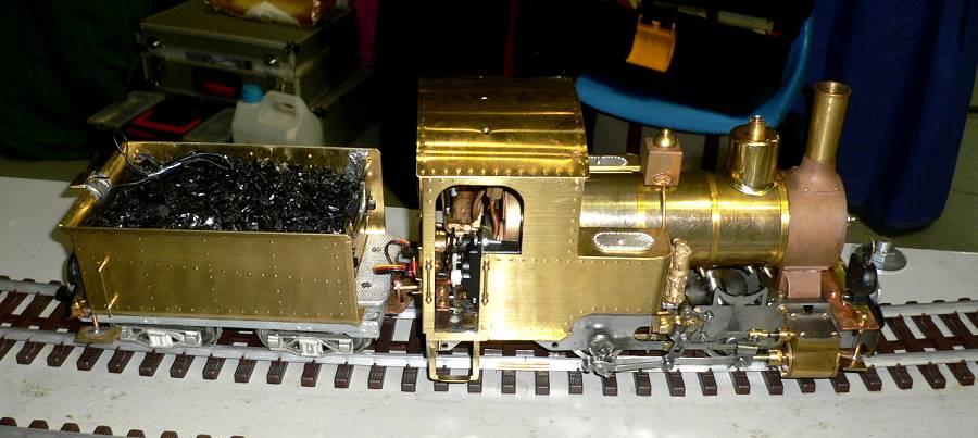 Voici une Roundhouse, à vapeur vive. C'est la Billy (ne pas confondre avec Bilie). Elle est semblable à la William (qui ne se fait plus), et qui avait le gros avantage d'avoir un tender pour y loger le récepteur, les piles ou accus.