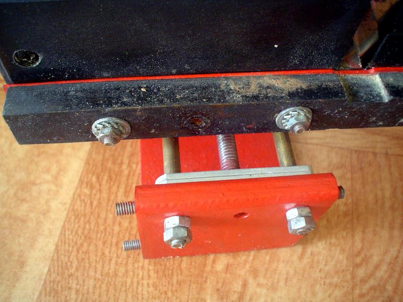 |  | On voit mieux l'équerre qui va maintenir le rabot; elle est vissée ou soudée sur le petit fer en U. Ne tenez pas compte des trous multiples ... probablement des erreurs ou ... le seul morceau de ferraille disponible ! |