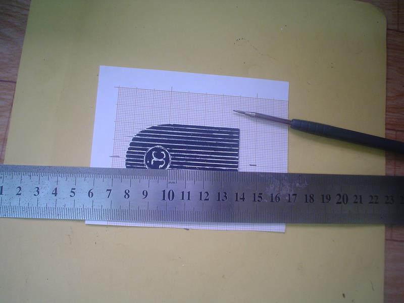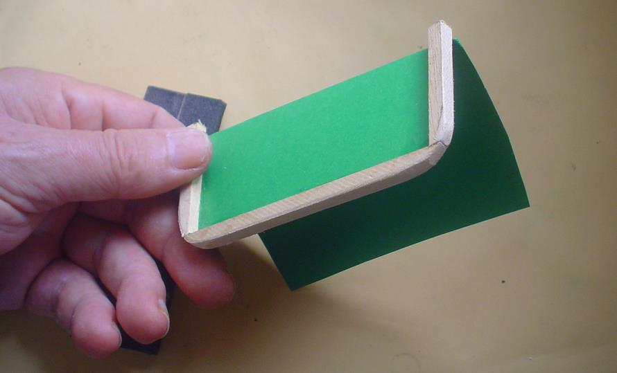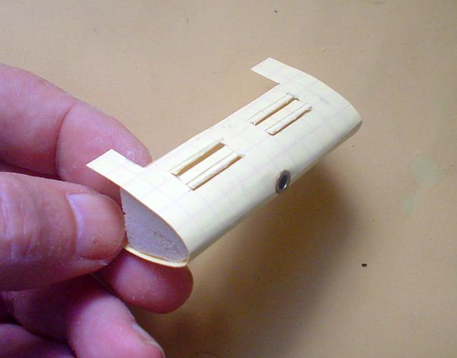 Pour obtenir de fines rayures et donner un certain relief au radiateur, emploi de papier à dessin pour grattage. En collant sur du papier millimétré, on obtient un bon parallélisme et un écartement correct. Pour le cerclage, une bande de plastique découpée dans un emballage : pour la maintenir pendant le collage à la cyano, prévoir 2 petites fentes sur le support. |