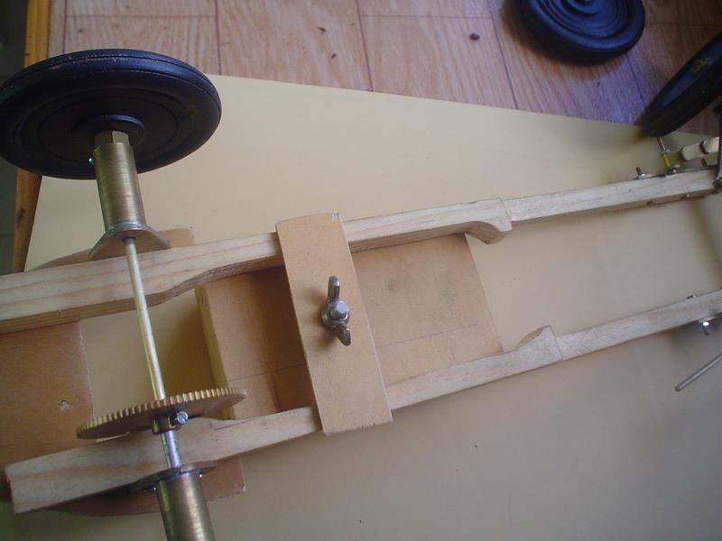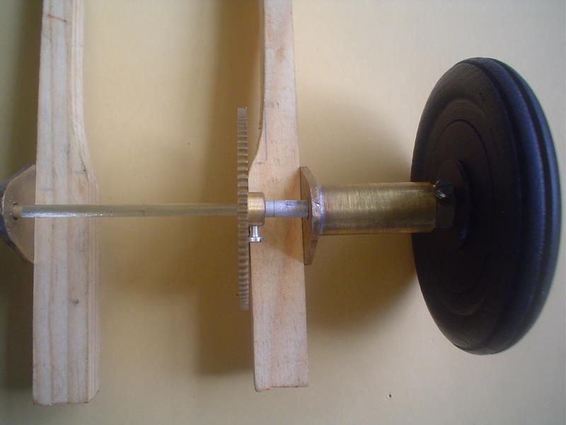Il va falloir ajouter une entretoise : petit tube d'alu pour que la roue dentée ne vienne pas frotter sur le bois.